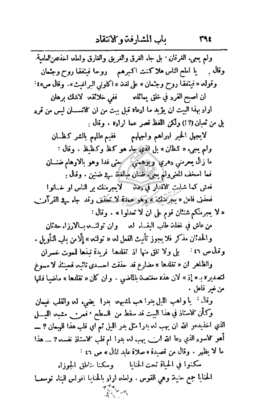 وكأن الأستاذ في هذا البيت قد سقط من السطح، فمن مشبه الليل الذي أخذ يدعو الله أن يهب له بنوا مثل بدر الليل ثم أي قلب هذا الهيمان؟ - أهو الأسود الذي دعا الله أن يهب له بدرا أم قلب الأستاذ نفسه؟ - هذا ما لا يظهر. وقال من قصيدة (صلاة عابد المال) ص 46: