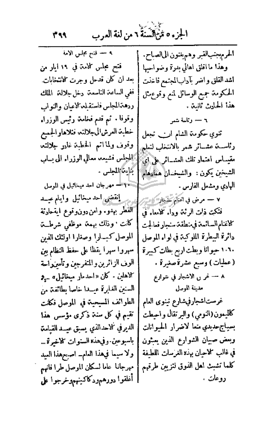 موظفي شرطة الموصل كبارا وصغارا أولئك الذين سهروا سهرا يقظا على حفظ النظام بين ألوف الزائرين والمتفرجين وتأمين راحة الآهلين. كان (أحد مار ميخائيل) في السنين الغابرة عيدا خاصا بطائفة من الطوائف المسيحية في الموصل فكانت تقيم في كل سنة ذكرى مؤسس هذا الدير في الأحد الذي يسبق عيد القيامة بأسبوعين. وفي هذه السنوات الأخيرة - ولا سيما في هذا العام - أصبح هذا العيد مهرجانا عاما لسكان الموصل طرا فانهم أغلقوا دورهم ودكاكينهم وخرجوا على