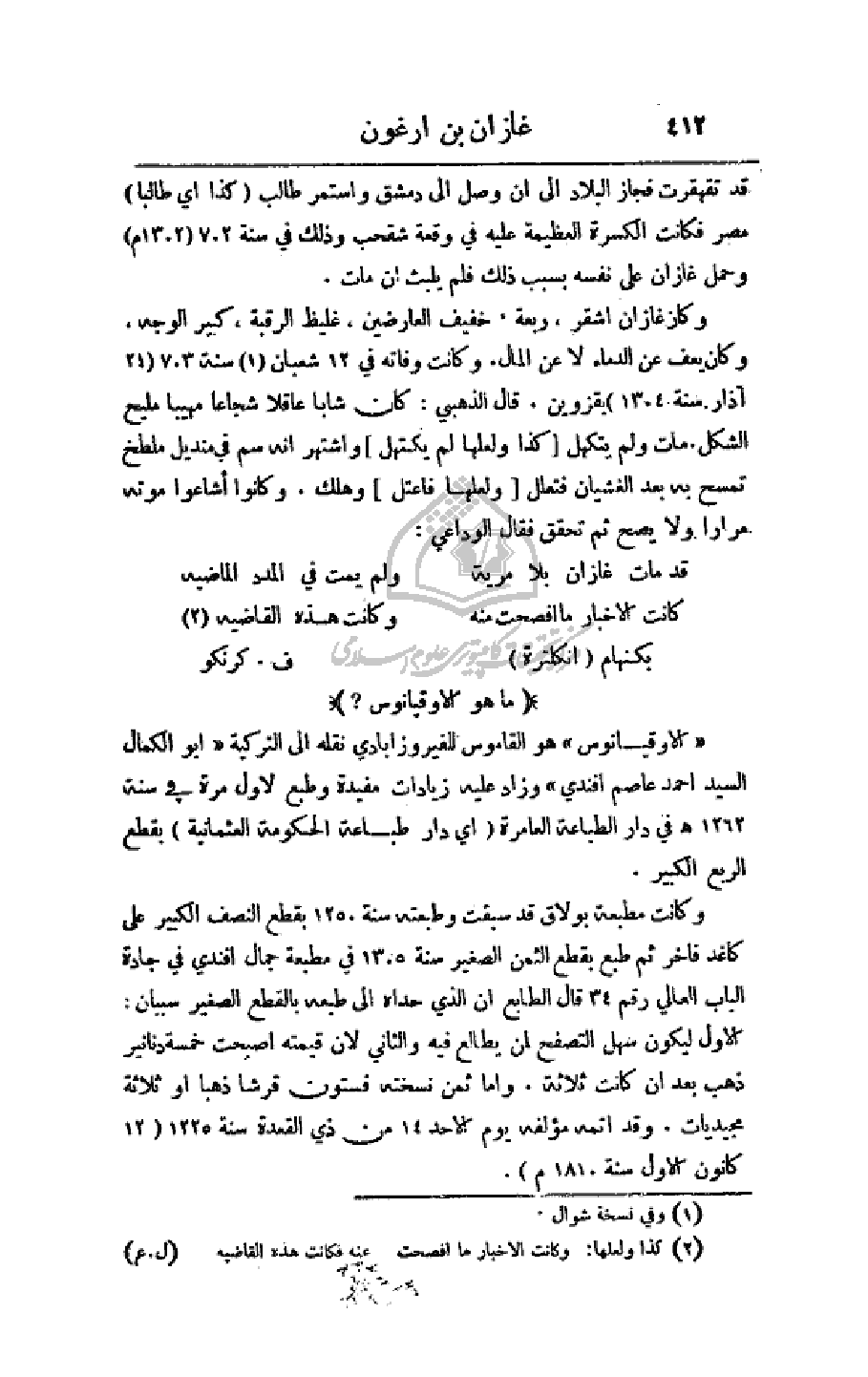 (الاوقيانوس) هو القاموس للفيروز ابادي نقله إلى التركية (أبو الكمال السيد أحمد عاصم أفندي) وزاد عليه زيادات مفيدة وطبع لأول مرة في سنة 1262هـ في دار الطباعة العامرية