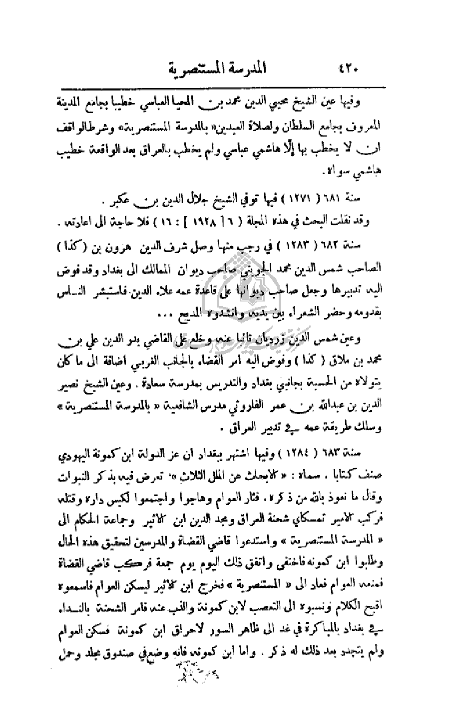 سنة 683 (1284) وفيها أشتهر ببغداد أن عز الدولة ابن كمونة اليهودي صنف كتابا، سماه: