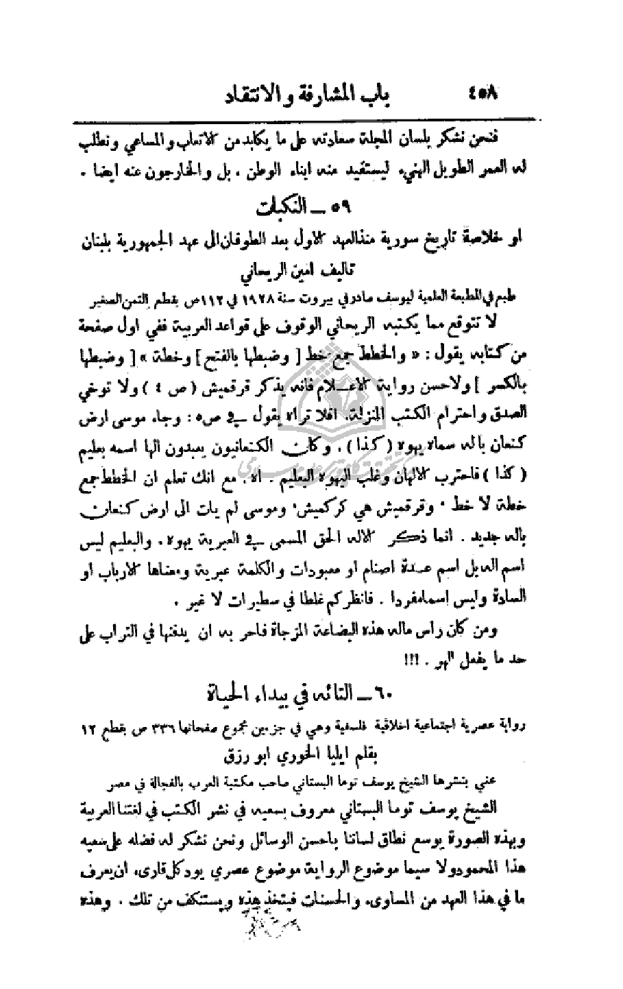 فنحن نشكر بلسان المجلة سعادته على ما يكابد من الأتعاب والمساعي ونطلب له العمر الطويل الهنيء ليستفيد منه أبناء الوطن، بل والخارجون عنه أيضا.