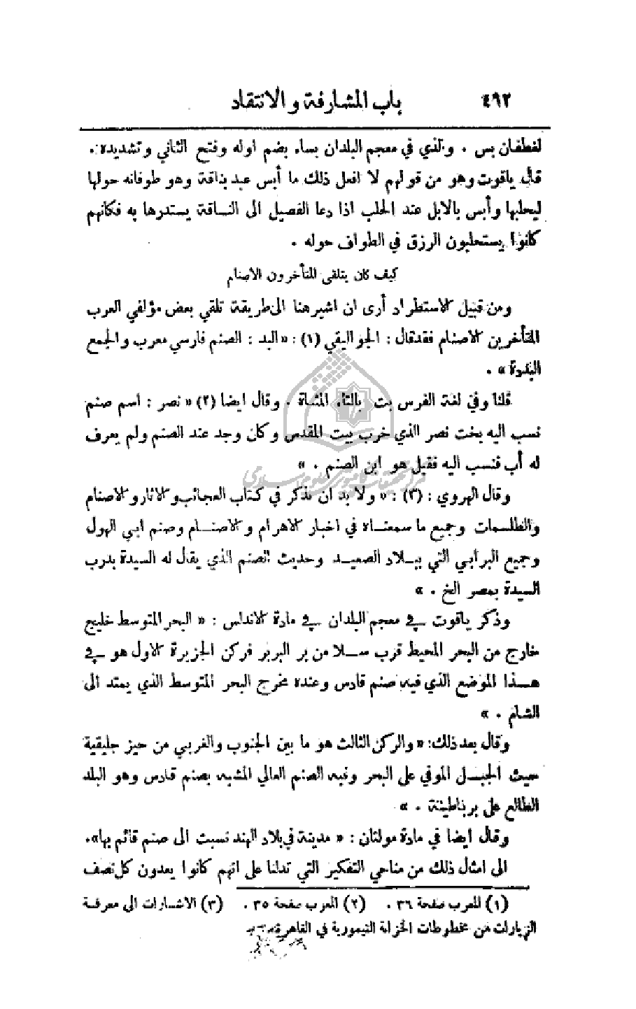 ومن قبيل الاستطراد أرى أن أشير هنا إلى طريقة تلقي بعض مؤلفي العرب المتأخرين الأصنام فقد قال: الجواليقي: (البد: الصنم فارسي معرب والجمع البددة).