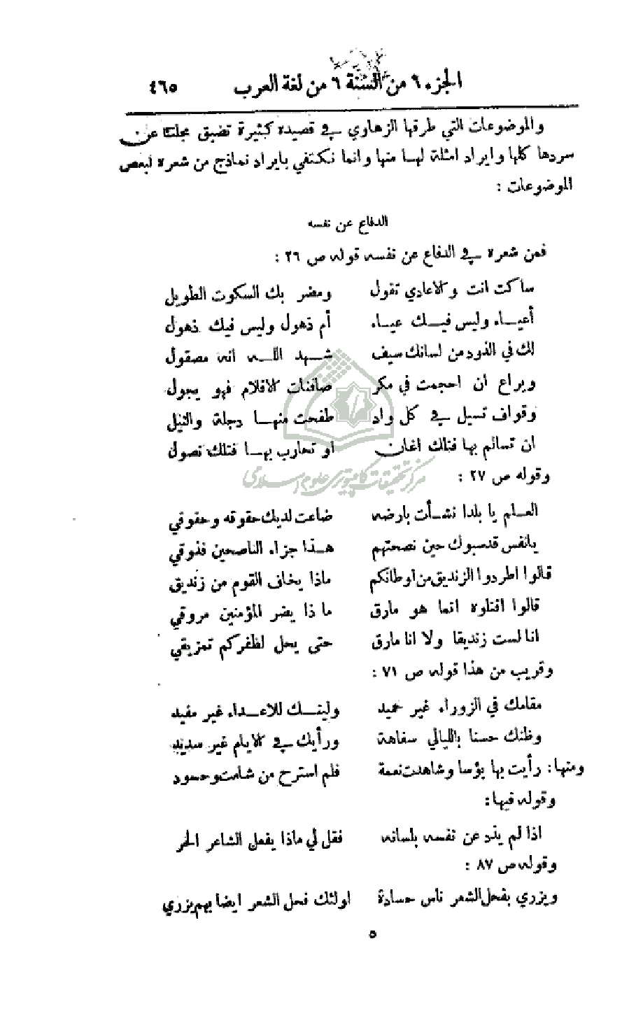 فمن شعره في الدفاع عن نفسه قوله ص 26:
