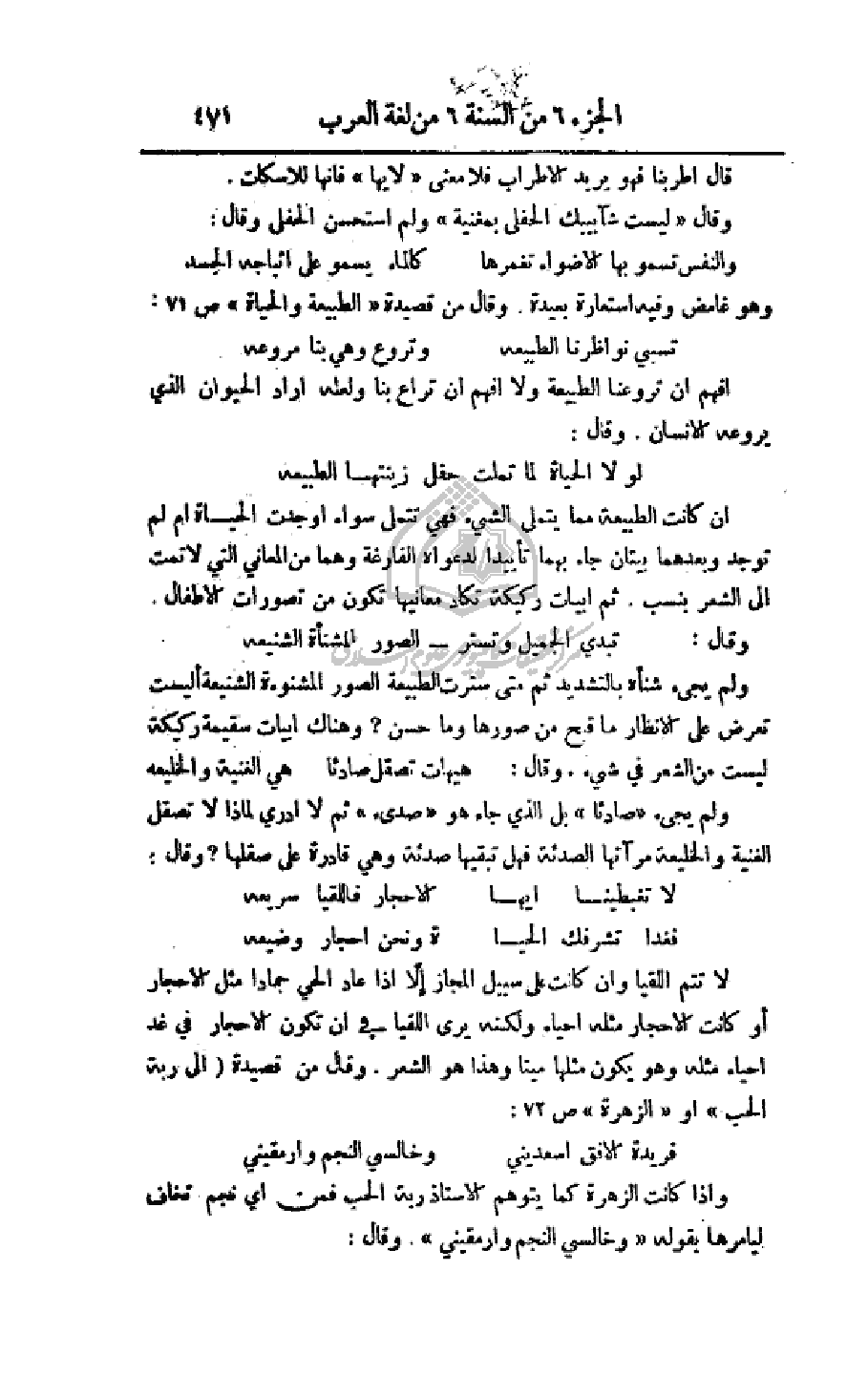 ولم يجئ شنأه بالتشديد ثم سترت الطبيعة الصور المشنوءة الشنيعة ألست تعرض على الأنظار ما قبح من صورها وما حسن؟ وهناك أبيات سقيمة ركيكة ليست من الشعر في شيء وقال: