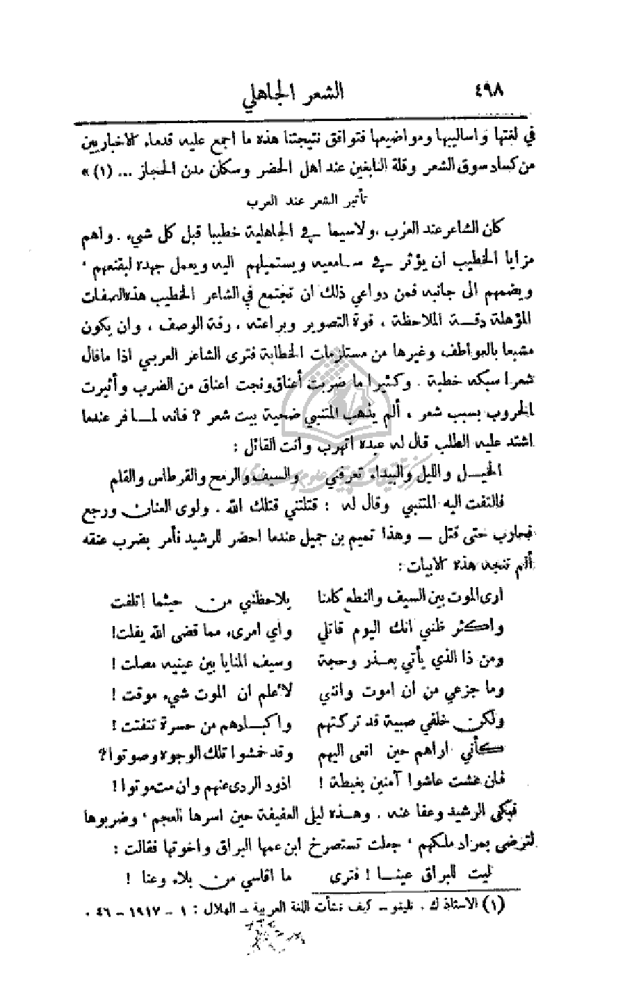 كان الشاعر عند العرب، ولا سيما في الجاهلية خطيبا قبل كل شيء واهم مزايا الخطيب أن يؤثر في سامعيه ويستميلهم إليه ويعمل جهده ليقنعهم، ويضمهم إلى جانبه فمن دواعي ذلك أن تجتمع في الشاعر الخطيب هذه الصفات المؤهلة دقة الملاحظة، قوة التصوير وبراعته، رقة الوصف، وإن يكون مشبعا بالعواطف وغيرها من مستلزمات الخطابة فترى الشاعر العربي إذا ما قال شعرا سبكه خطبة. وكثيرا ما ضربت أعناق ونجت أعناق من الضرب وأثيرت الحروب بسبب، ألم يذهب المتنبي ضحية بيت شعر؟ فانه لما فر عندما اشتد عليه الطلب قال عبده أتهرب وأنت القائل: