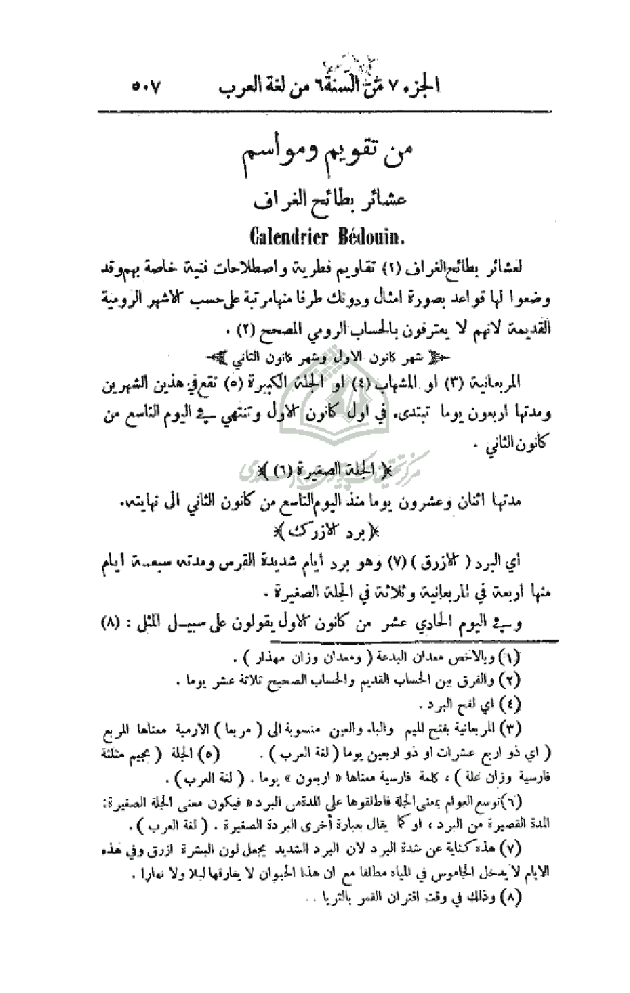 لعشائر بطائح الغراف تقاويم فطرية واصطلاحات فينة خاصة بهم وقد وضعوا لها قواعد بصورة أمثال ودونك طرفا منها مرتبة على حسب الأشهر الرومية القديمة لأنهم لا يعترفون بالحساب الرومي المصحح.