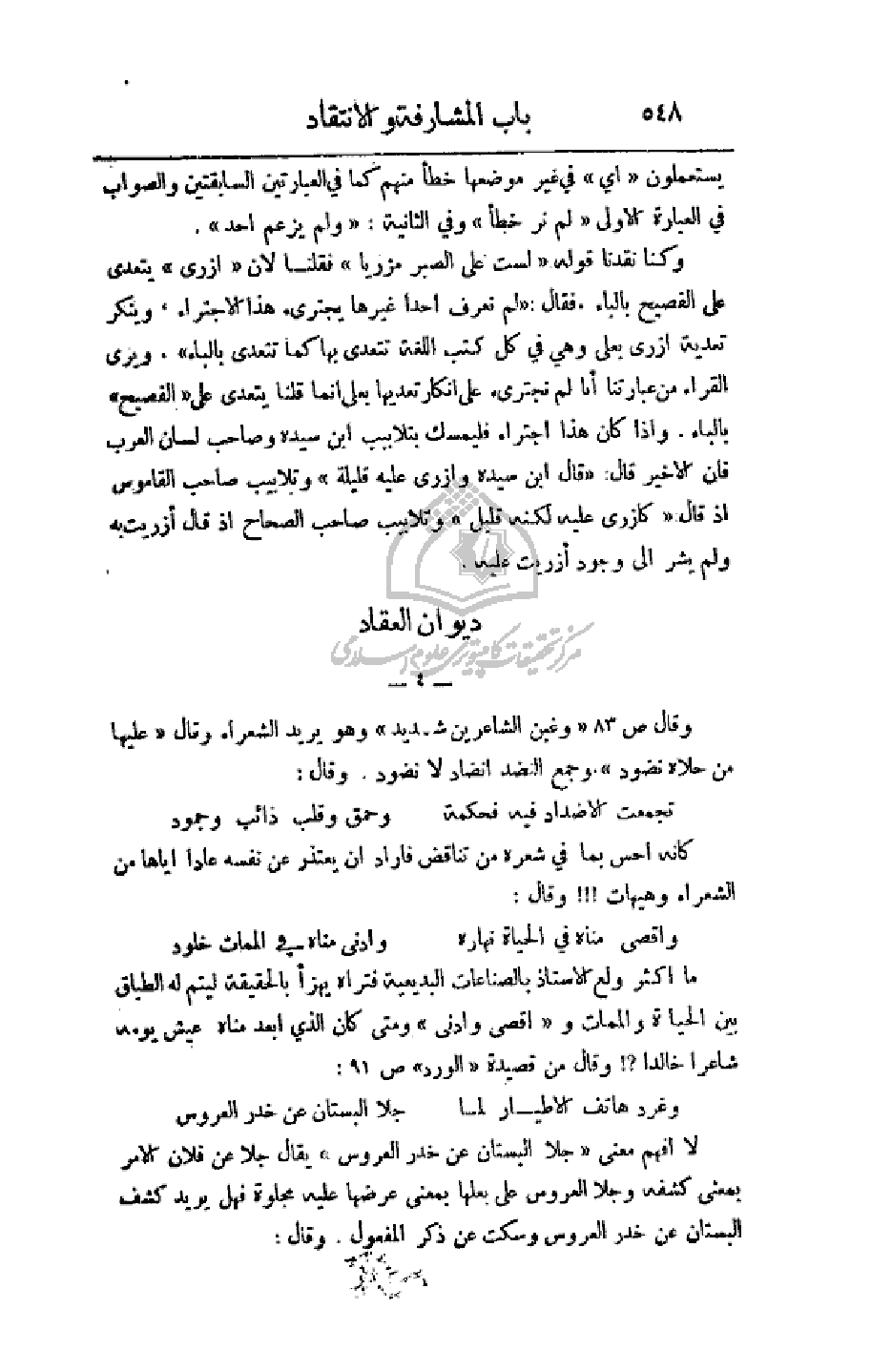 وكنا نقدنا قوله (لست على الصبر مزريا) فقلنا لان (أزرى) يتعدى على الفصيح بالباء، فقال: (لم نعرف أحداً غيرها يجترئ هذا الاجتراء، وينكر تعديه أزرى بعلى وهي في كل كتب اللغة تتعدى بها كما تتعدى بالباء) ويرى القراء من عباراتنا أنا لم نجترئ على إنكار عديها بعلى إنما قلنا يتعدى على (الفصيح) بالباء وإذا كان هذا اجتراء فليمسك بتلابيب ابن سيده وصاحب لسان العرب فإن الأخير قال: (قال ابن سيده عليه قليلة) وتلابيب صاحب القاموس إذ قال: (كأزري عليه لكنه قليل) وتلابيب صاحب الصحاح إذ قال أزريت به ولم يشر إلى وجود أزريت عليه.