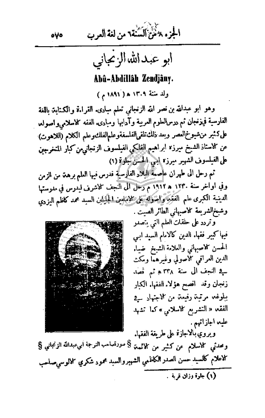 (صورة) صاحب الترجمة أبي عبد الله الزنجاني