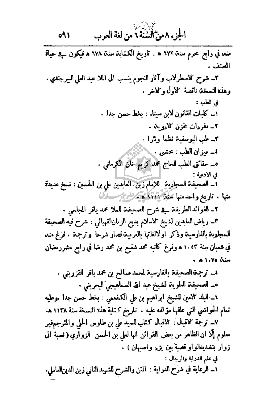 3 - شرح الإسطرلاب وآثار النجوم ينسب إلى الملا عبد العلي البيرجندي. وهذه النسخة ناقصة الأول والآخر.