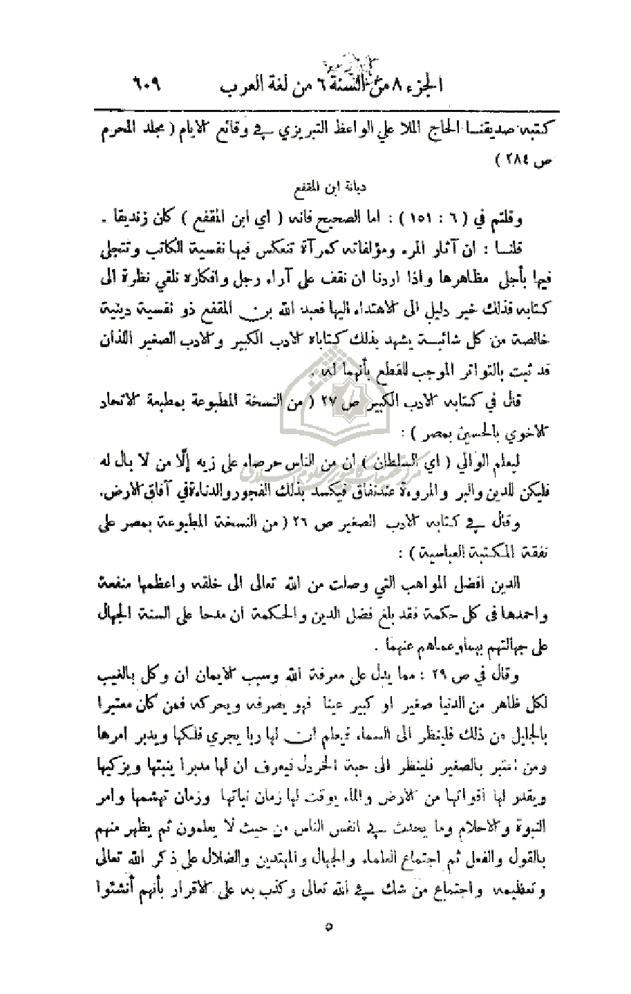 وقال في كتابه الأدب الصغير ص 26 (من النسخة المطبوعة بمصر على نفقة المكتبة العباسية):