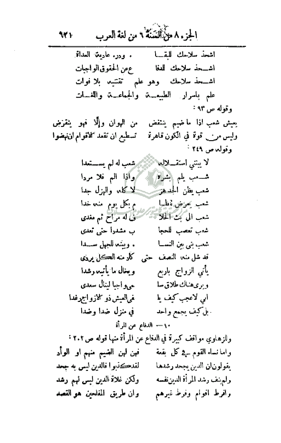 وللزهاوي مواقف كبيرة في الدفاع عن المرأة منها قوله ص 202: