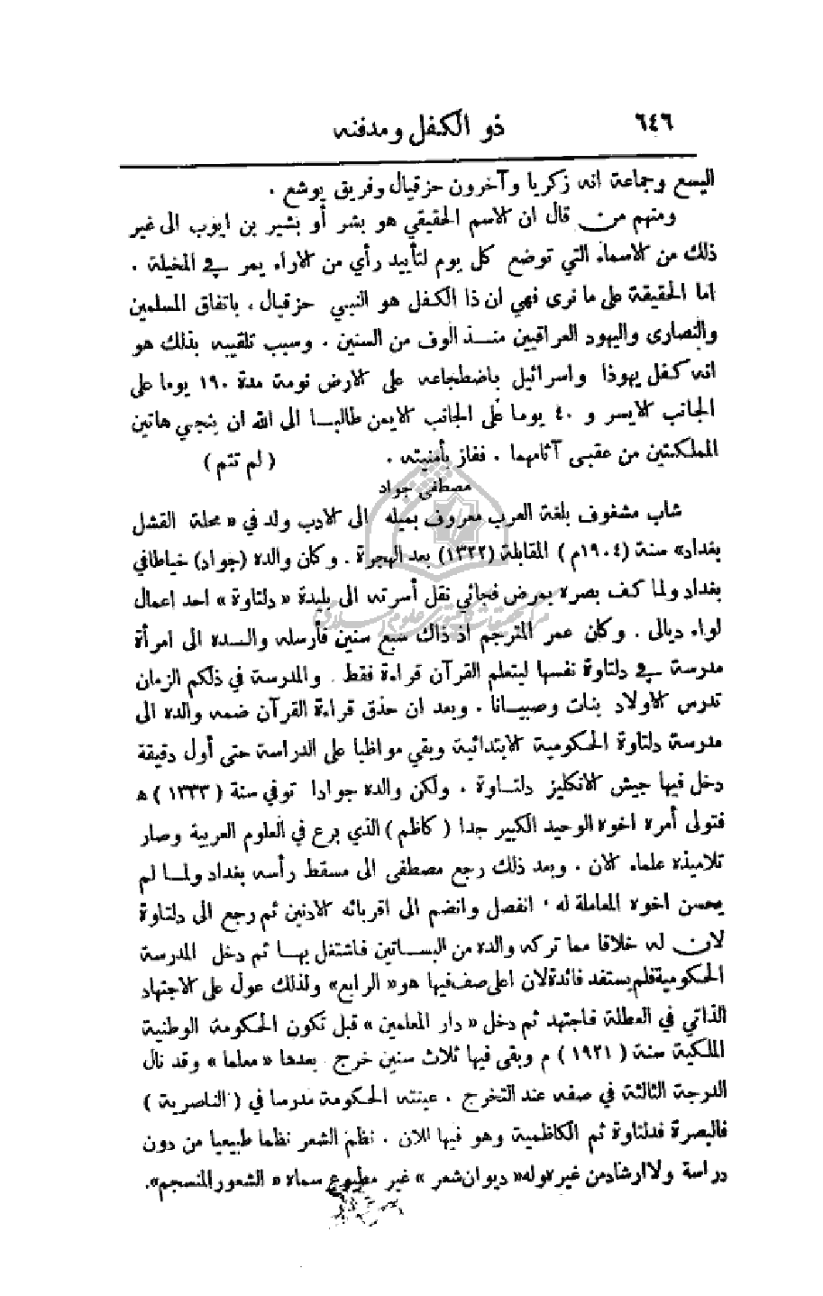 ومنهم من قال أن الاسم الحقيقي هو بشر أو بشير بن أيوب إلى غير ذلك من الأسماء التي توضع كل يوم لتأييد رأي من الآراء يمر في المخيلة. أما الحقيقة على ما نرى فهي أن ذا الكفل هو النبي حزقيال، باتفاق المسلمين والنصارى واليهود العراقيين منذ ألوف من السنين. وسبب تلقيبه بذلك هو إنه كفل يهوذا وإسرائيل باضطجاعه على الأرض نومة مدة 190 يوما على الجانب الأيسر و40 يوما على الجانب الأيمن طالبا إلى الله أن ينجي هاتين المملكتين من عقبى آثامهما. ففاز بأمنيته.