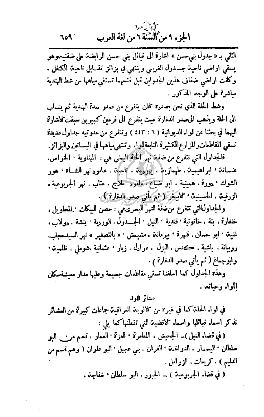 وهذه الجداول كما أسلفنا تسقي مقاطعات جسيمة وعليها مدار معيشة سكان اللواء وحياته.