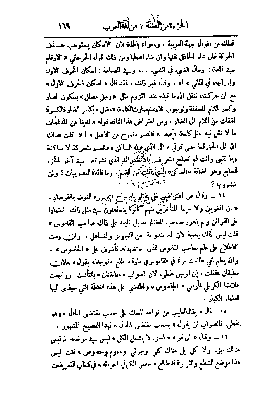 16 - وقال (إن قوله (الجزء لا يشمل الكل) ليس في موضعه إذ ليس هناك جزء ولا كل بل هناك كلي وجزئي وعموم وخصوص) قلت ليس هذا موضع التنطع والثرثرة فليطالع (حصر الكل في أجزائه) في كتاب التعريفات