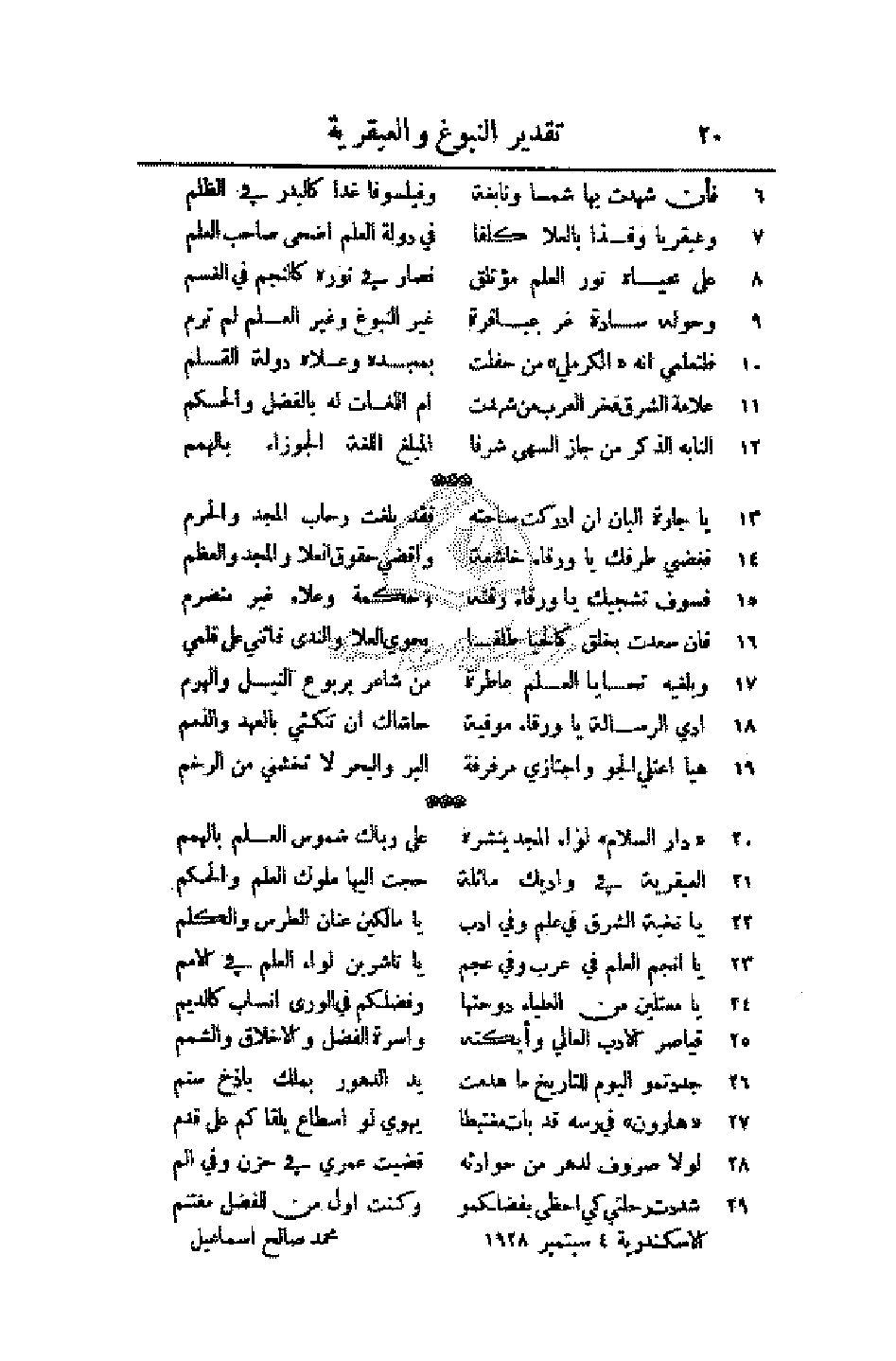 يا نخبة الشرق في علم وفي أدب ... يا مالكين عنان الطرس والكلم