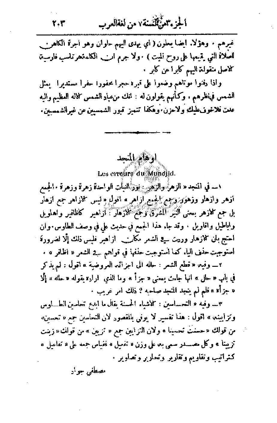 2 - وفيه (قطع الشعر: حلله إلى أجزائه العروضية) أقول: لم يذكر في باب (حلل) أنها جاءت بمعنى (جزأ) وما الذي أراده بقوله (حلله) إلاّ (جزأه) فلم ينجد المنجد صاحبه؟ ذلك أمر غريب.