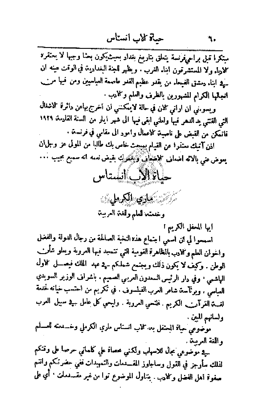 حياة الأب أنستاس ماري الكرملي وخدمته للعلم وللغة العربية