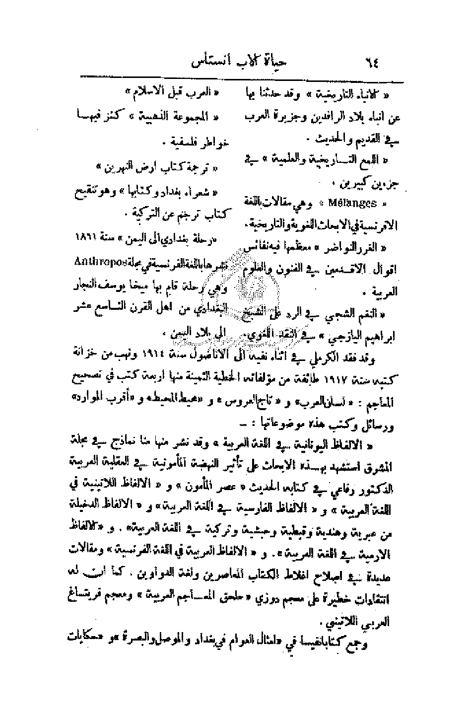 وهي مقالات باللغة الأفرنسية في الأبحاث اللغوية والتاريخية.