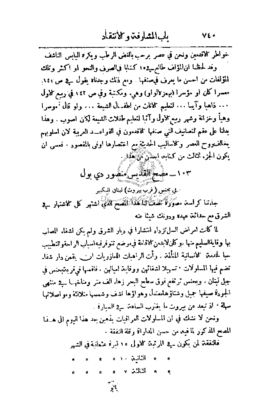 وقد لحظنا أن المؤلف طالع في 15 كتابا في الصرف والنحو أو أكثر وتلك المؤلفات من أحسن ما يعرف في صنفها. ومع ذلك وجدناه يقول في ص 141: معسرا كان أو مؤسرا (بهمزة الواو) وهيء ومكتبة وفي ص 142 في ربيع الأول. . . ذاهبا وآيبا. . . لتعليم الإناث من أطفال الشيعة. . . ولو قال: موسرا وهيأ وخزانة وشهر ربيع الأول وآئبا لتعليم طفلات الشيعة لكان أصوب. وهذا يدلنا على عقم التصانيف التي صنفها الأقدمون في القواعد العربية لأن أسلوبهم يخالف روح العصر والأساليب الحديثة مع اختصارها أوفى بالمقصود، فعسى أن يكون الجزء الثالث من كتابه أحسن من هذا.