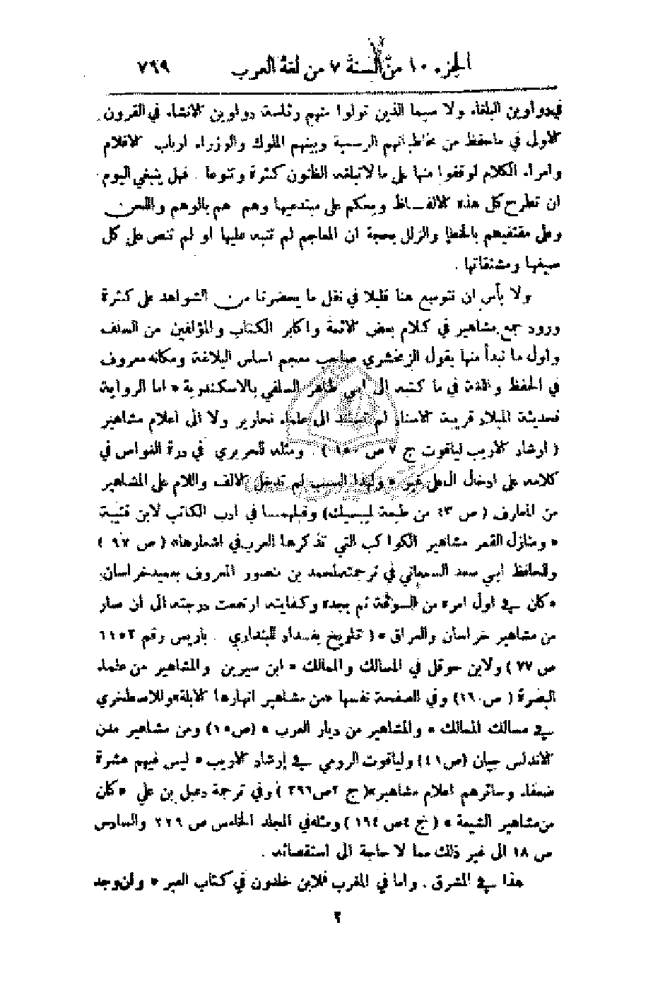 ولا بأس أن نتوسع هنا قليلاً في نقل ما يحضرنا من الشواهد على كثرة ورود جمع مشاهير في كلام بعض الأئمة وأكابر الكتاب والمؤلفين من السلف وأول ما نبدأ منها بقول الزمخشري صاحب معجم أساس البلاغة ومكانه معروف في الحفظ واللغة في ما كتبه إلى أبي طاهر السلفي بالإسكندرية (أما الرواية فحديثة الميلاد قريبة الإسناد لم تستند إلى علماء نحارير ولا إلى أعلام مشاهير (إرشاد الأريب لياقوت ج 7 ص 150). ومثله للحريري في درة الغواص في كلامه على إدخال ال على غير (ولهذا السبب لم تدخل الألف واللام على المشاهير من المعارف (ص 43 من طبعة ليبسيك) وقبلهما في أدب الكاتب لابن قتيبة (ومنازل القمر مشاهير الكواكب التي تذكرها العرب في أشعارها) (ص 97) وللحافظ أبي سعد السمعاني في ترجمته لمحمد بن منصور المعروف بعميد خراسان وكان في أول أمره من السوقة ثم بجده وكفايته ارتفعت درجته إلى أن صار من مشاهير خراسان والعراق) (تاريخ بغداد للبنداري باريس رقم 6152 ص 77) ولابن حوقل في المسالك والممالك (ابن سيرين والمشاهير من علماء البصرة (ص 16) وفي الصفحة نفسها من مشاهير أنهارها الأبلة) وللاصطخري في مسالك الممالك (والمشاهير من ديار العرب) (ص 15) ومن مشاهير مدن الأندلس جيان (ص 41) ولياقوت الرومي في إرشاد الأريب (ليس فيهم عشرة ضعفاء وسائرهم أعلام مشاهير) (ج 2 ص 296) وفي ترجمة دعبل بن علي (كان من مشاهير الشيعة) (ج 4 ص 164) ومثله في المجلد الخامس ص 229 والسادس من 18 إلى غير ذلك مما لا حاجة إلى استقصائه.