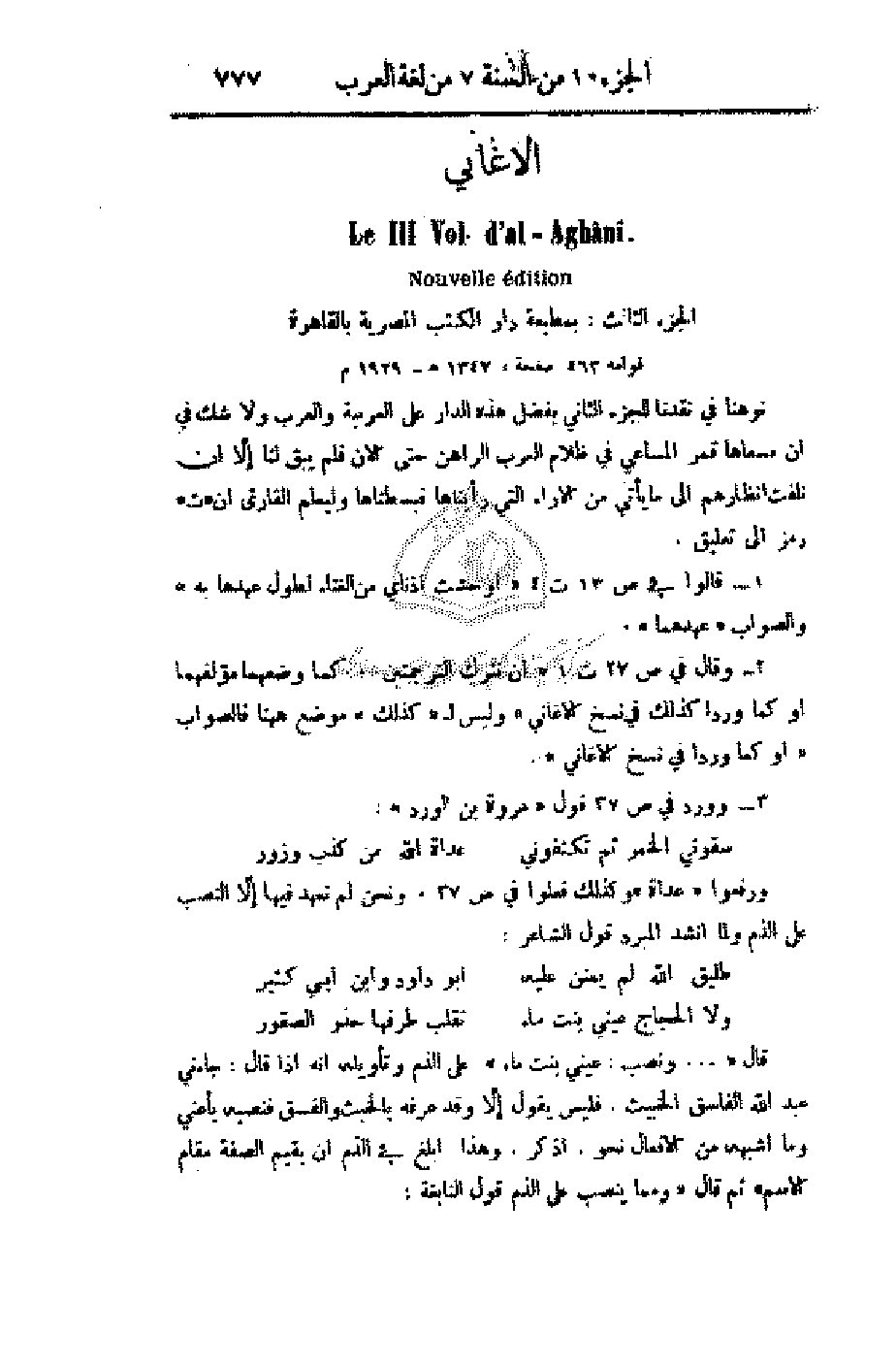 بمطبعة دار الكتب المصرية بالقاهرة، قوامه 463 صفحة، 1347هـ - 1929م.
