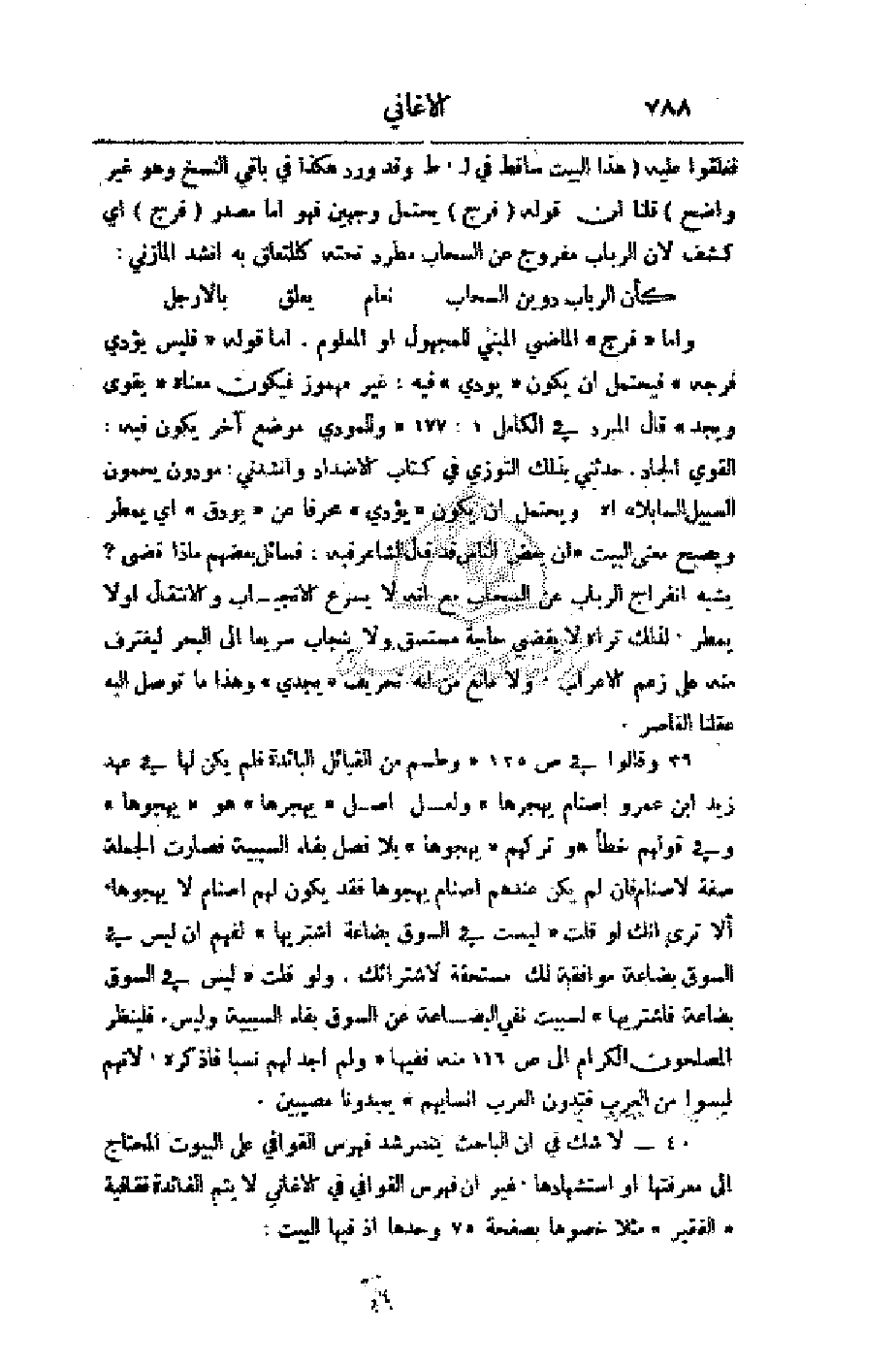 40 - لا شك في أن الباحث يسترشد فهرس القوافي على البيوت المحتاج إلى معرفتها أو استشهادها. غير أن فهرس القوافي في الأغاني لا يتم الفائدة فقافية (الفقير مثلا خصوها بصفحة 75 وحدها إذ فيها البيت:
