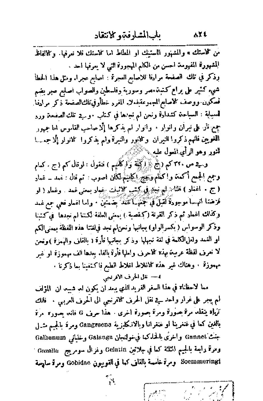 وذكر في تلك الصفحة مرادفا للأصابع العجرة: أصابع عجراء ومثل هذا الخطأ شيء كثير على يراع كتبة مصر وسورية وفلسطين والصواب أصابع عجر بضم فسكون. ووصف الأصابع المجموعة بفعلاء المفرد خطأ وفي تلك الصفحة ذكر مرادفا للسبابة: السباحة كشدادة ونحن لم نجدها في كتاب. وفي تلك الصفحة ورد جمع نار على نيران وأنوار. وأنوار لم يذكرها إلا صاحب القاموس أما جمهور اللغويين فأنهم ذكروا النيران والأنور والنيرة ولم يذكروا الأنوار إلا جمعا للنور وهو الرأي المعول عليه.