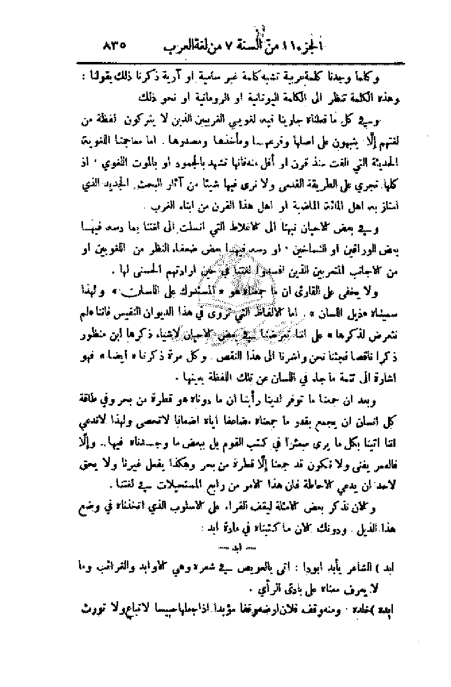 وفي بعض الأحيان نبهنا إلى الأغلاط التي أنسلت إلى لغتنا بما دسه فيها بعض الوراقين أو النساخين، أو دسه فيها بعض ضعفاء النظر من اللغويين أو من الأجانب المتعربين الذين أفسدوا لغتنا في حين إرادتهم الحسنى لها.