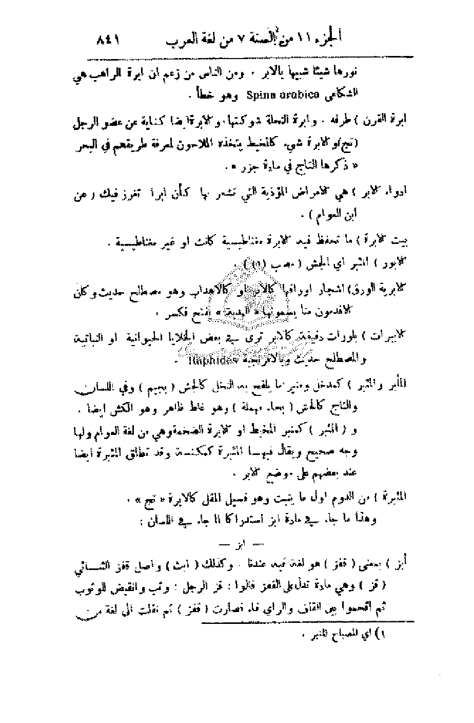المأبر والمئبر) كمدخل ومنبر مما يلقح به النخل كالجش (بجيم) وفي اللسان والتاج كالحش (بحاء مهملة) وهو غلط ظاهر وهو الكش أيضا. و (المئبر) كمنبر الخيط أو الأبرة الضخمة وهي من لغة العوام ولها وجه صحيح ويقال فيها المئبرة كمكنسة وقد تطلق المئبرة أيضا عند بعضهم على موضع الأبر.