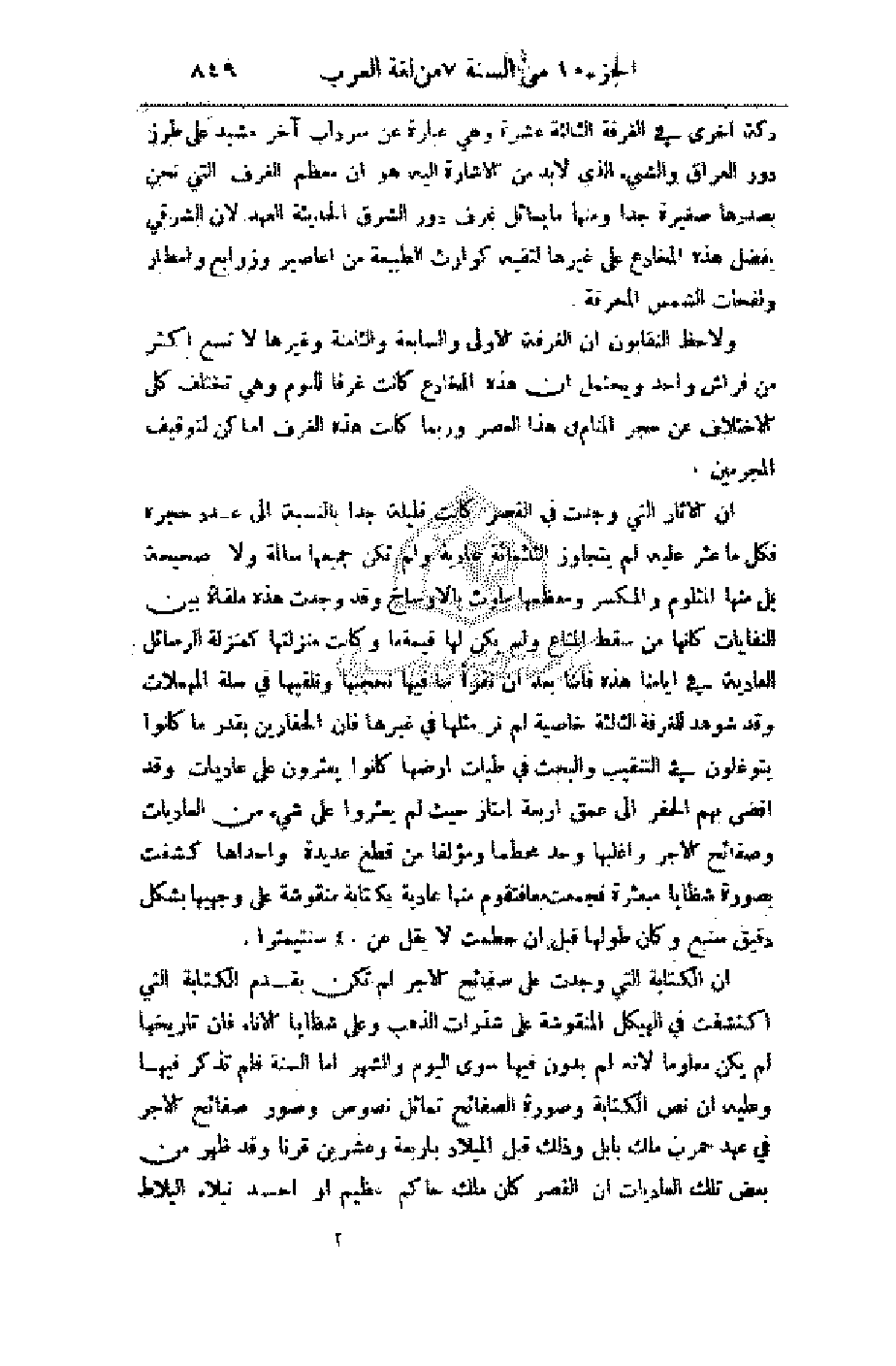إن الآثار التي وجدت في القصر كانت قليلة جدا بالنسبة إلى عدد حجره فكان ما عثر عليه لم يتجاوز الثلثمائة عادية ولم تكن جميعها سالمة ولا صحيحة بل منها المثلوم والمكسر ومعظمها ملوث بالأوساخ وقد وجدت هذه ملقاة بين النفايات كأنها من سقط المتاع ولم يكن لها قيمة ما وكانت منزلتها كمنزلة الرسائل العادية في أيامنا هذه فإننا بعد أن نقرأ ما فيها نحجبها ونلقيها في سلة المهملات وقد شوهد للغرفة الثالثة خاصية لم نر مثلها في غيرها فإن الحفارين بقدر ما كانوا يتوغلون في التنقيب والبحث في طيات أرضها كانوا يعثرون على عاديات وقد أفضى بهم الحفر إلى عمق أربعة أمتار حيث لم يعثروا على شيء من العاديات وصفائح الآجر وأغلبها وجد محطما ومؤلفا من قطع عديدة وإحداها كشفت بصورة شظايا مبعثرة فجمعت معا فتقوم منها عادية بكتابة منقوشة على وجهيها بشكل دقيق سنيع