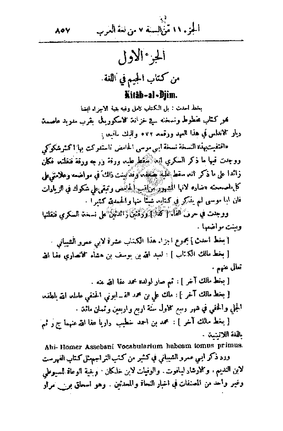 (بخط أحدث) مجموع أجزاء هذا الكتاب عشرة لأبي عمرو الشيباني.