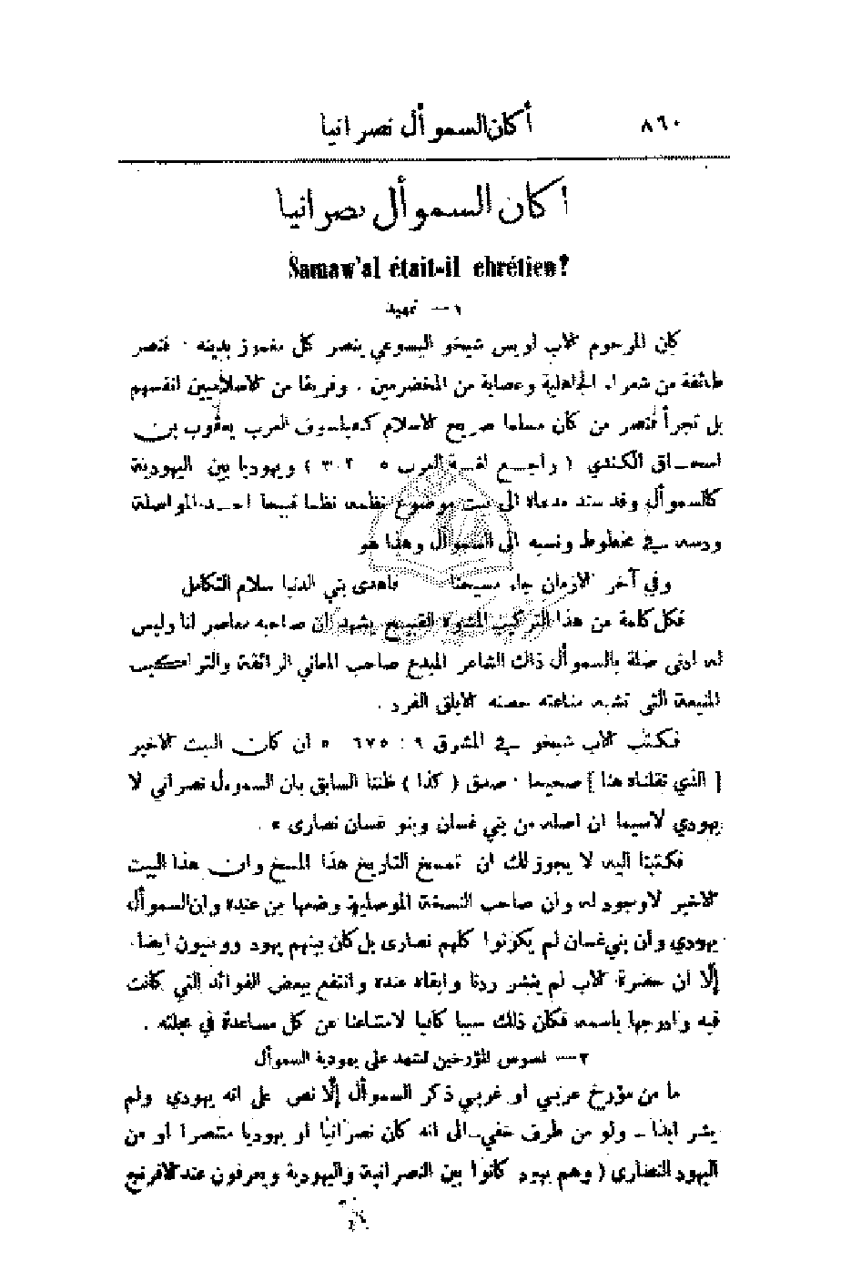 فكتبنا إليه لا يجوز لك أن تمسخ التاريخ هذا المسخ وأن هذا البيت الأخير لا وجود له وأن صاحب النسخة الموصلية وضعها من عنده وأن السموأل يهودي وأن بني غسان لم يكونوا كلهم نصارى بل كان بينهم يهود ووثنيون أيضا. إلا أن حضرة الأب لم ينشر ردنا وأبقاه عنده وانتفع ببعض الفوائد التي كانت فيه وأدرجها باسمه فكان ذلك سببا كافيا لامتناعنا عن كل مساعدة في مجلته