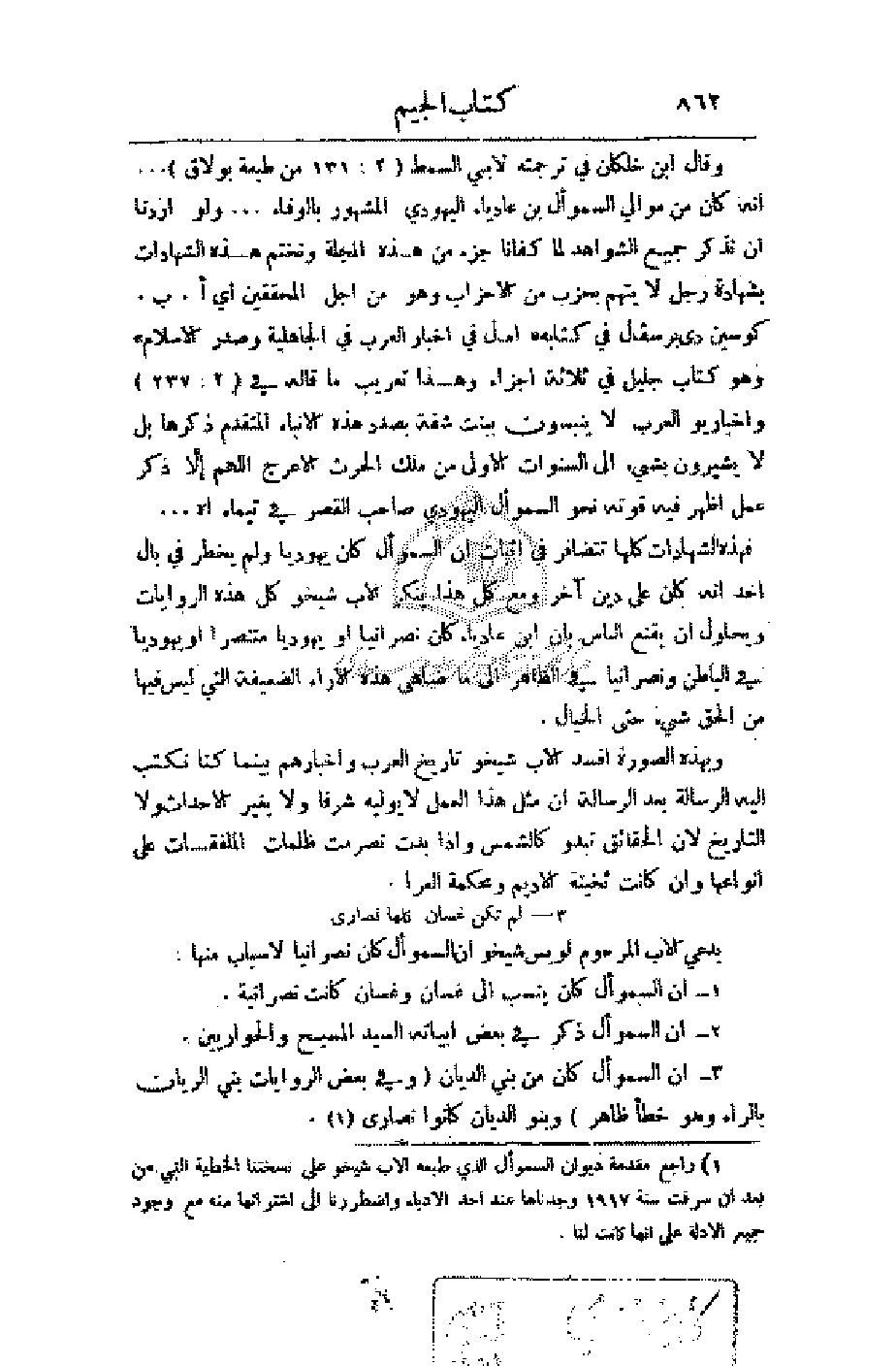 لما كفانا جزء من هذه المجلة ونختم هذه الشهادات بشهادة رجل لا يتهم بحزب من الأحزاب وهو من أجل المحققين أي أ. ب. كوسين دى برسفال في كتابه (آمال في أخبار العرب في الجاهلية وصدر الإسلام) وهو كتاب جليل في ثلاثة أجزاء وهذا تعريب ما قاله في (2: 237) وأخباريو العرب لا ينبسون ببنت شفة بصدد هذه الأنباء المتقدم ذكرها بل لا يشيرون بشيء إلى السنوات الأولى من ملك الحرث الأعرج اللهم إلا ذكر عمل أظهر فيه نحو السموأل اليهودي صاحب القصر في تيماء اهـ. . .