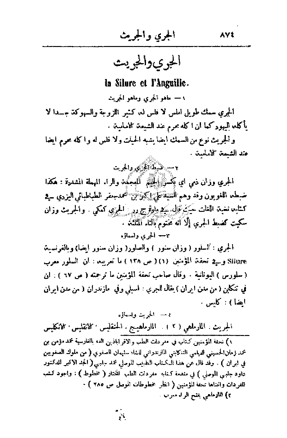 الجري: السلور (وزان سنور) والصلور (وزان سنور أيضا) وبالفرنسية وفي تحفة المؤمنين (ص 138) ما تعريبه: أن السلور معرب (سلورس) اليونانية. وقال صاحب تحفة المؤمنين ما ترجمته (ص 67): أن في تنكابن (من مدن إيران) يقال للجري: أسبلي وفي مازندران (من مدن إيران أيضا): كليس.