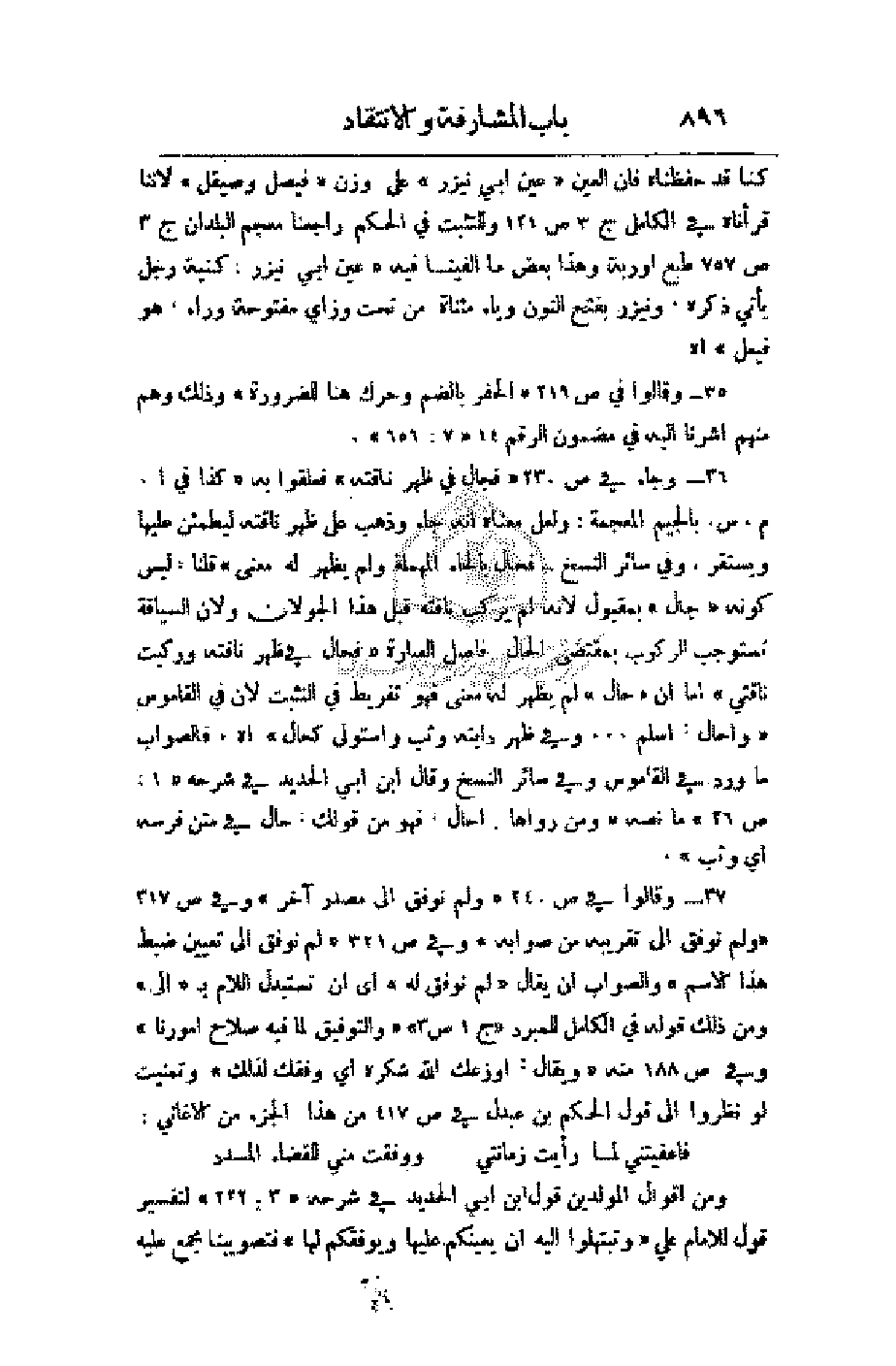 36 - وجاء في ص 230 (فجال في ظهر ناقته) فعلقوا به (كذا في ا. م. س. بالجيم المعجمة: ولعل معناه أنه جاء وذهب على ظهر ناقته ليطمئن عليها ويستقر، وفي سائر النسخ - فحال بالحاء المهملة ولم يظهر له معنى) قلنا: ليس كونه (جال) بمقبول لأنه لم يركب ناقته قبل هذا الجولان ولأن السياقة تستوجب الركوب بمقتضى الحال فأصل العبارة (فحال في ظهر ناقته وركبت ناقتي) أما أن (حال) لم يظهر له معنى فهو تفريط في التثبت لأن في القاموس (وأحال: أسلم. . . وفي ظهر دابته وثب واستولى كحال) اهـ. فالصواب ما ورد في القاموس وفي سائر النسخ وقال ابن أبي الحديد في شرحه (1: ص 26) ما نصه (ومن رواها. أحال، فهو من قولك: حال في متن فرسه أي وثب).
