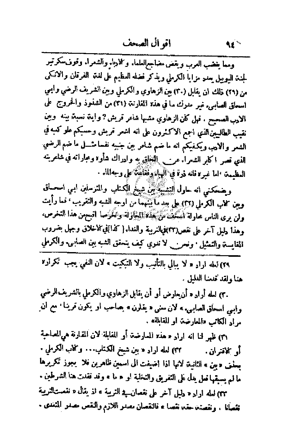 ويضحكني أنه حاول التشبيه بين شيخ الكتاب والمترسلين أبي إسحاق وبين الأب الكرملي على بعد ما بينهما من أوجه الشبه والتقريب، فما رأيت ولن يرى الناس محاولة أسخف من هذه المحاولة وتخرصا أقبح من هذا التخرص، وهذا دليل آخر على نقص في التربية والغذاء (كذا) في الأخلاق وجهل بضروب المقايسة والتمثيل، ونحن لا ندري كيف يتحقق الشبه بين الصابئ والكرملي