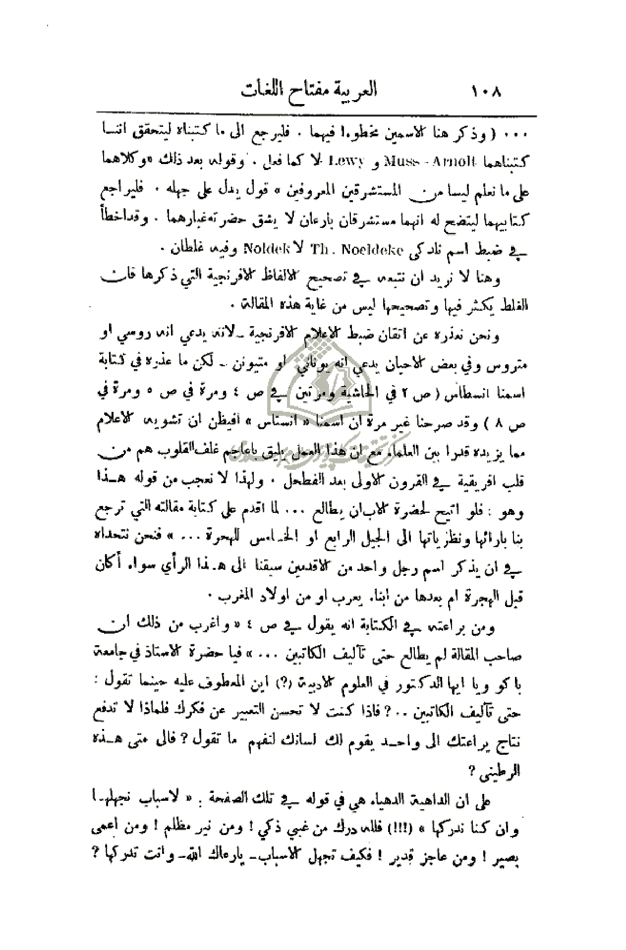 (وذكر هنا الاسمين مخطوءاً فيها. فليرجع إلى ما كتبناه ليتحقق أننا كتبناهما - لا كما فعل. وقوله بعد ذلك (وكلاهما على ما نعلم ليسا من المستشرقين المعروفين) قول يدل على جهله، فليراجع كتابيهما ليتضح له أنهما مستشرقان بارعان لا يشق حضرته غبارهما. وقد أخطأ في ضبط أسم نلد كي لا
