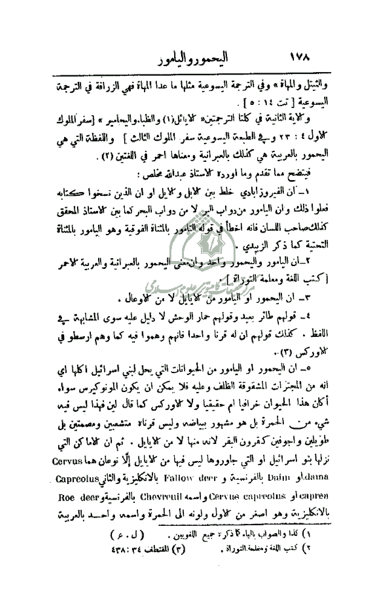 3 - أن اليحمور أو اليامور من الأيايل لا من الأوعال.