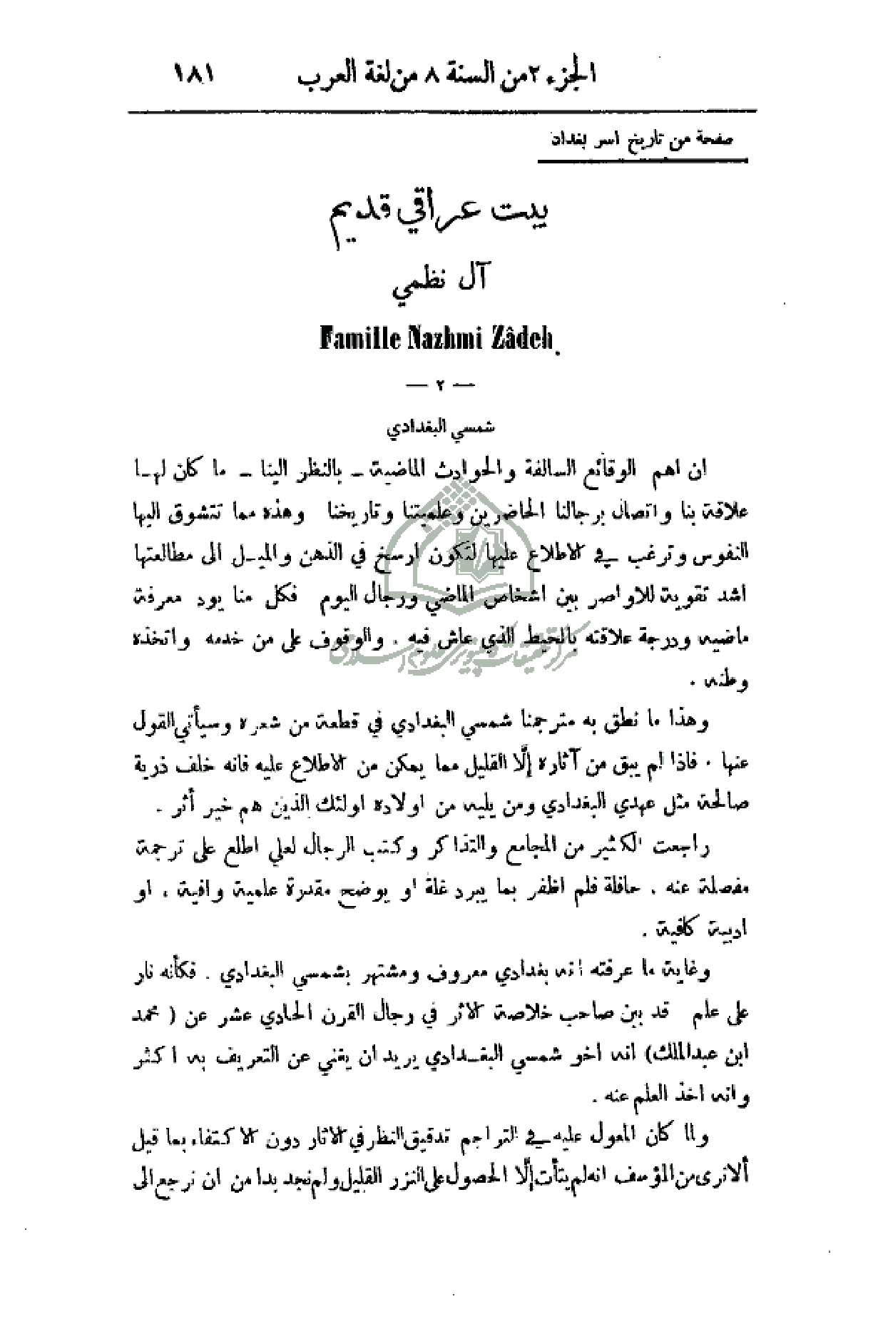 وهذا ما نطق به مترجمنا شمسي البغدادي في قطعة من شعره وسيأتي القول عنها. فإذا لم يبق من آثاره إلا القليل مما يمكن من الإطلاع عليه فأنه خلف ذرية صالحة مثل عهدي البغدادي ومن يليه من أولاده أولئك الذين هم خير أثر.