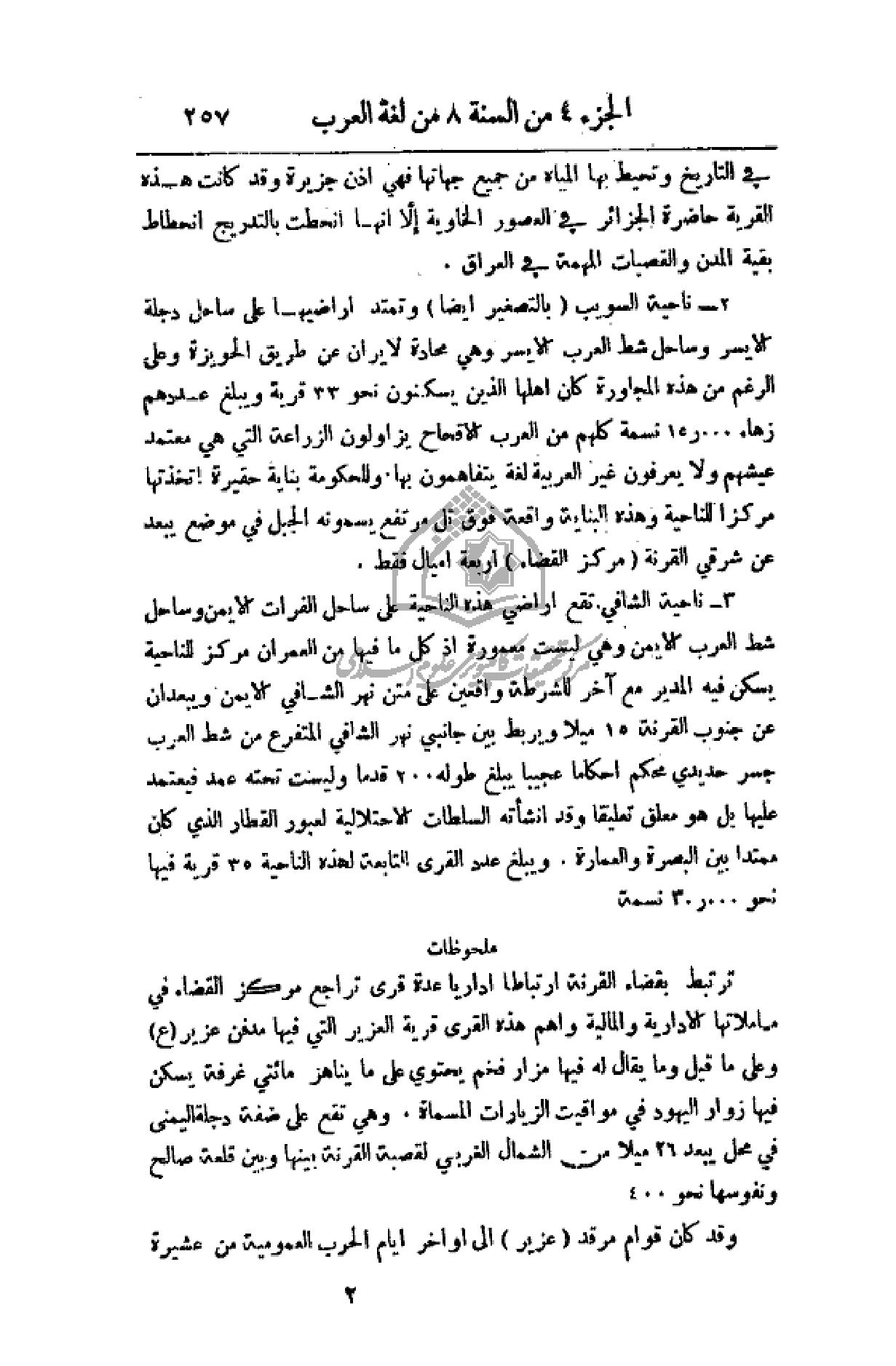في التاريخ وتحيط بها المياه من جميع جهاتها فهي إذن جزيرة وقد كانت هذه القرية حاضرة الجزائر في العصور الخاوية إلا أنها انحطت بالتدريج انحطاط بقية المدن والقصبات المهمة في العراق.