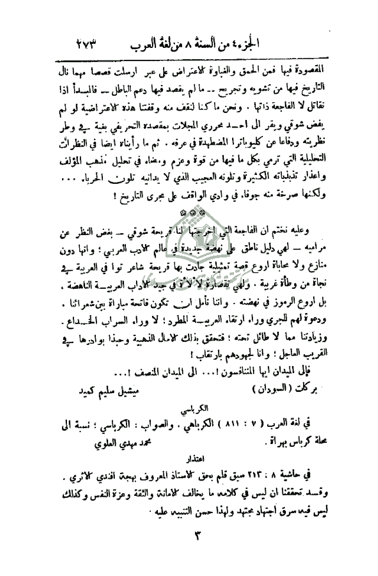 في حاشية 213: 8 سبق قلم بعمق الأستاذ المعروف بهجة أفندي الأثري، وقد تحققنا أن