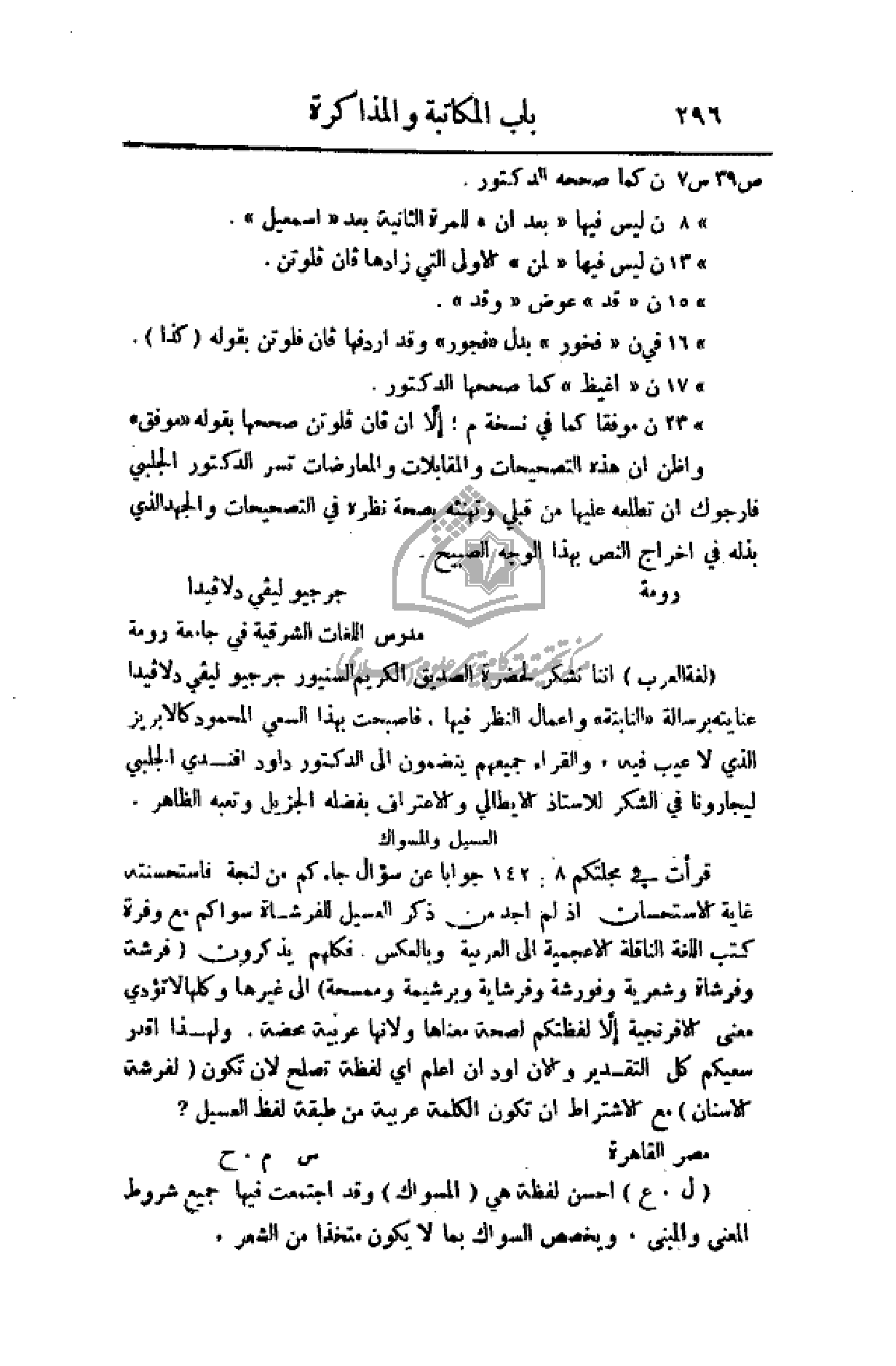 (لغة العرب) أننا نشكر لحضرة الصديق الكريم السنيور جرجيو ليفي دلافيدا عنايته برسالة (النابتة) وأعمال النظر فيها، فأصبحت بهذا السعي المحمود كالإبريز الذي لا عيب فيه، والقراء جميعهم ينضمون إلى الدكتور داود أفندي الجلبي ليجاورنا في الشكر للأستاذ الإيطالي والاعتراف بفضله الجزيل وتعبه الظاهر.