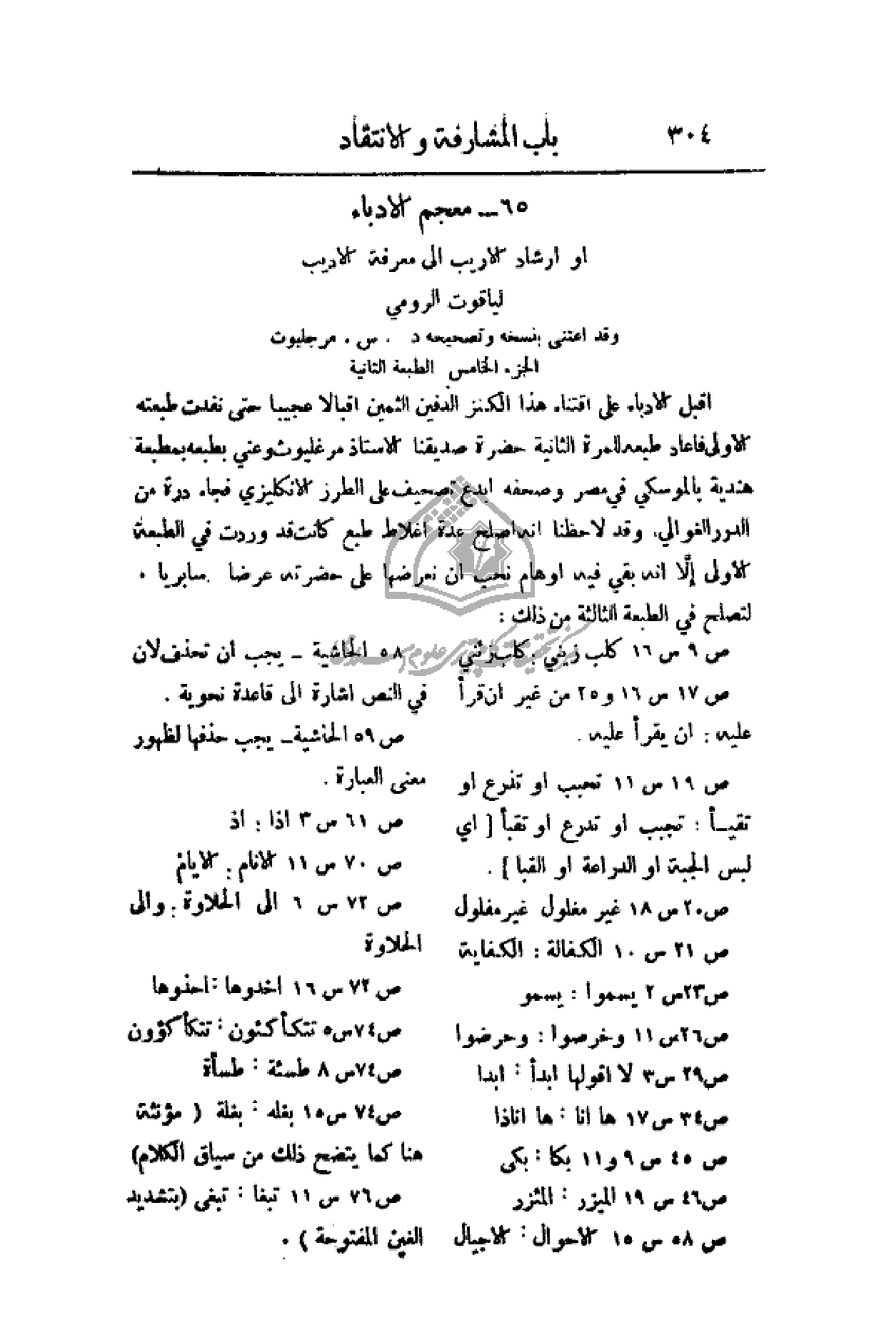 لياقوت الرومي، وقد اعتنى بنسخه وتصحيحه د. س. مرجليوت، الجزء الخامس الطبعة