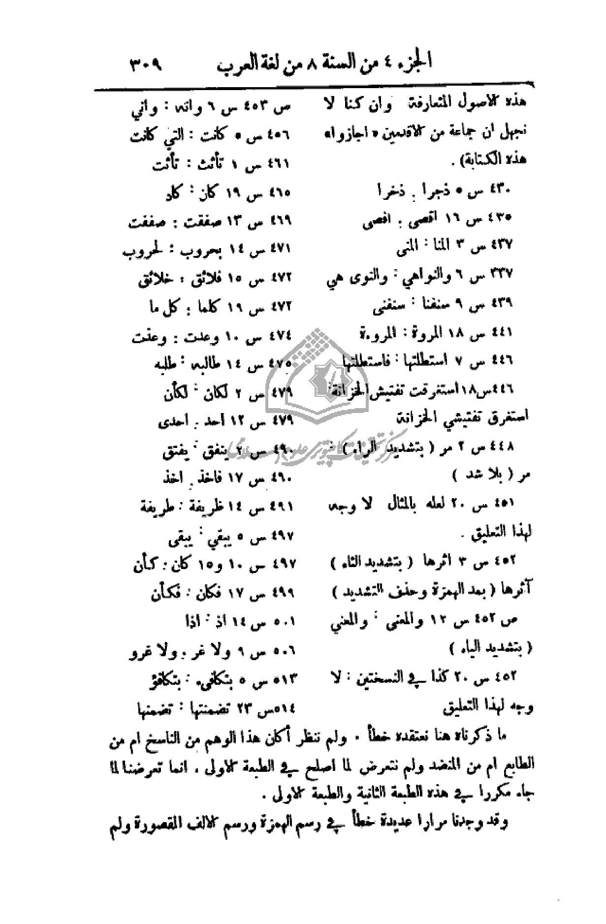 ما ذكرناه هنا نعتقده خطأ. ولم ننظر أكان هذا الوهم من الناسخ أم من الطابع أم من المنضد ولم نتعرض لما أصلح في الطبعة الأولى، إنما تعرضنا لما جاء في الطبعة الثانية والطبعة الأولى.