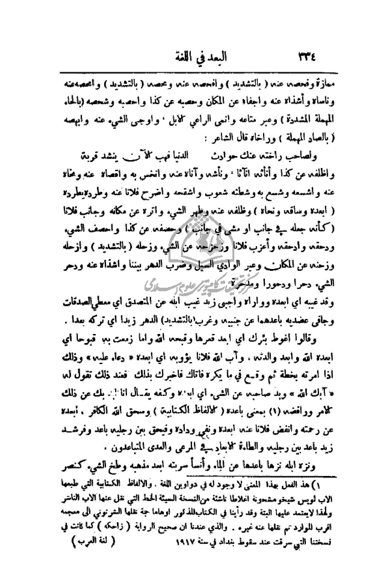 وقالوا أغوط بئرك أي لبعد قعرها وقبحة الله وأما زمعت به قبوحاً أي أبعده الله وأبعد والدته، وآب الله فلاناً يؤوبه أي أبعده (دعاء عليه) وذلك إذا أمرته بخطة ثم وقع في ما يكره فاتاك فأخبرك بذلك فعند ذلك تقول له (آبك الله) وبد صاحبه عن الشيء أي أبعده وكفه يقال أنا أبد بك عن ذلك الأمر ورافضه بمعنى باعده (الألفاظ الكتابية) وسحق الله الكافر، أبعده عن رحمته وانفض فلاناً عنه أبعده ونفي وداده وفيحق بين رجليه باعد وفرشد زيد باعد بيم رجليه والطاءة الأبعاد في المرعى والعدى المتباعدون.