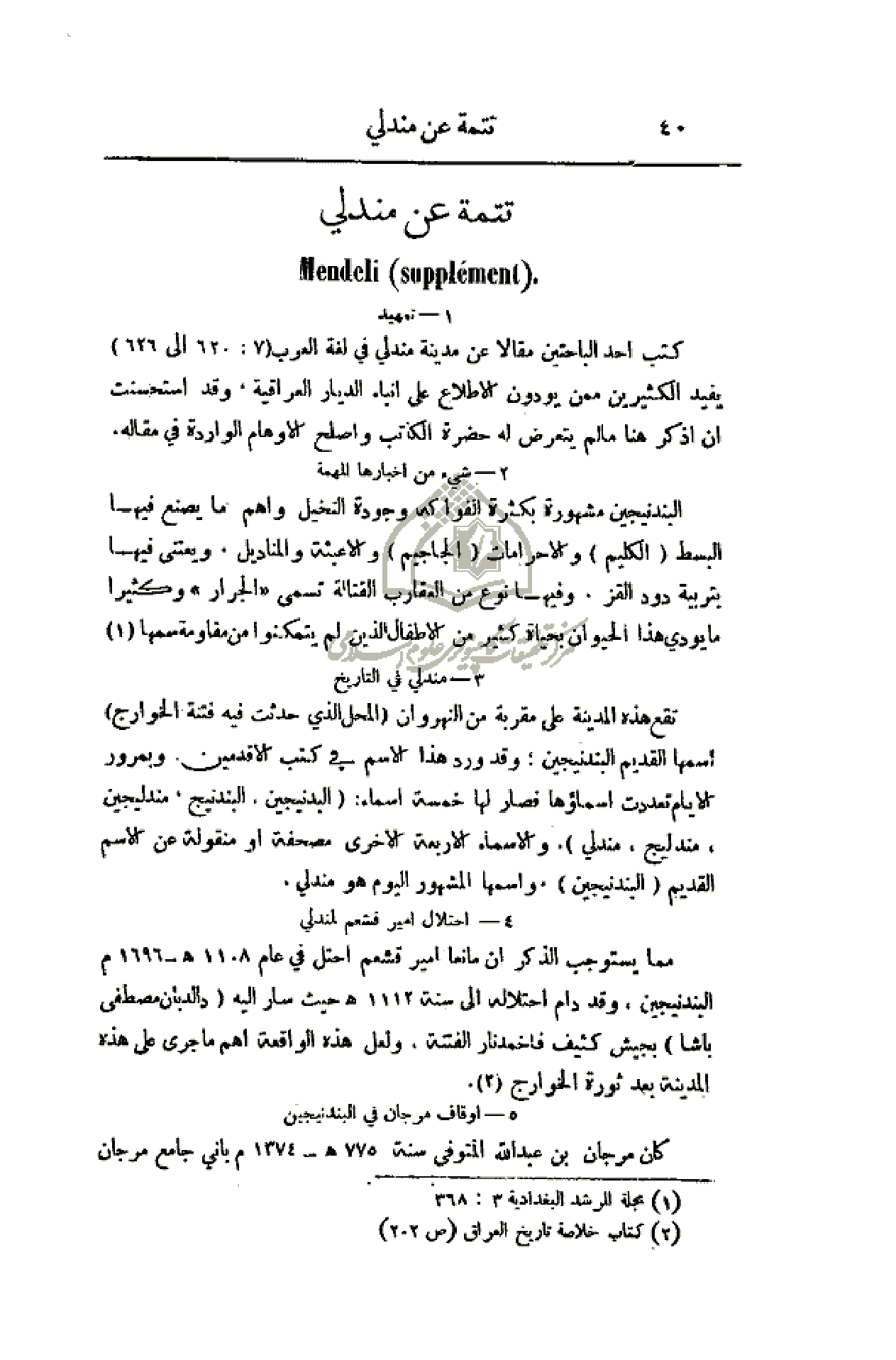كتب أحد الباحثين مقالا عن مدينة مندل يفي لغة العرب (620: 7 إلى 626) يفيد الكثيرون ممن يودون الاطلاع على أنباء الديار العراقية، وقد استحسنت أن اذكر هنا ما لم يتعرض له حضرة الكاتب واصلح الأوهام الواردة في مقاله.