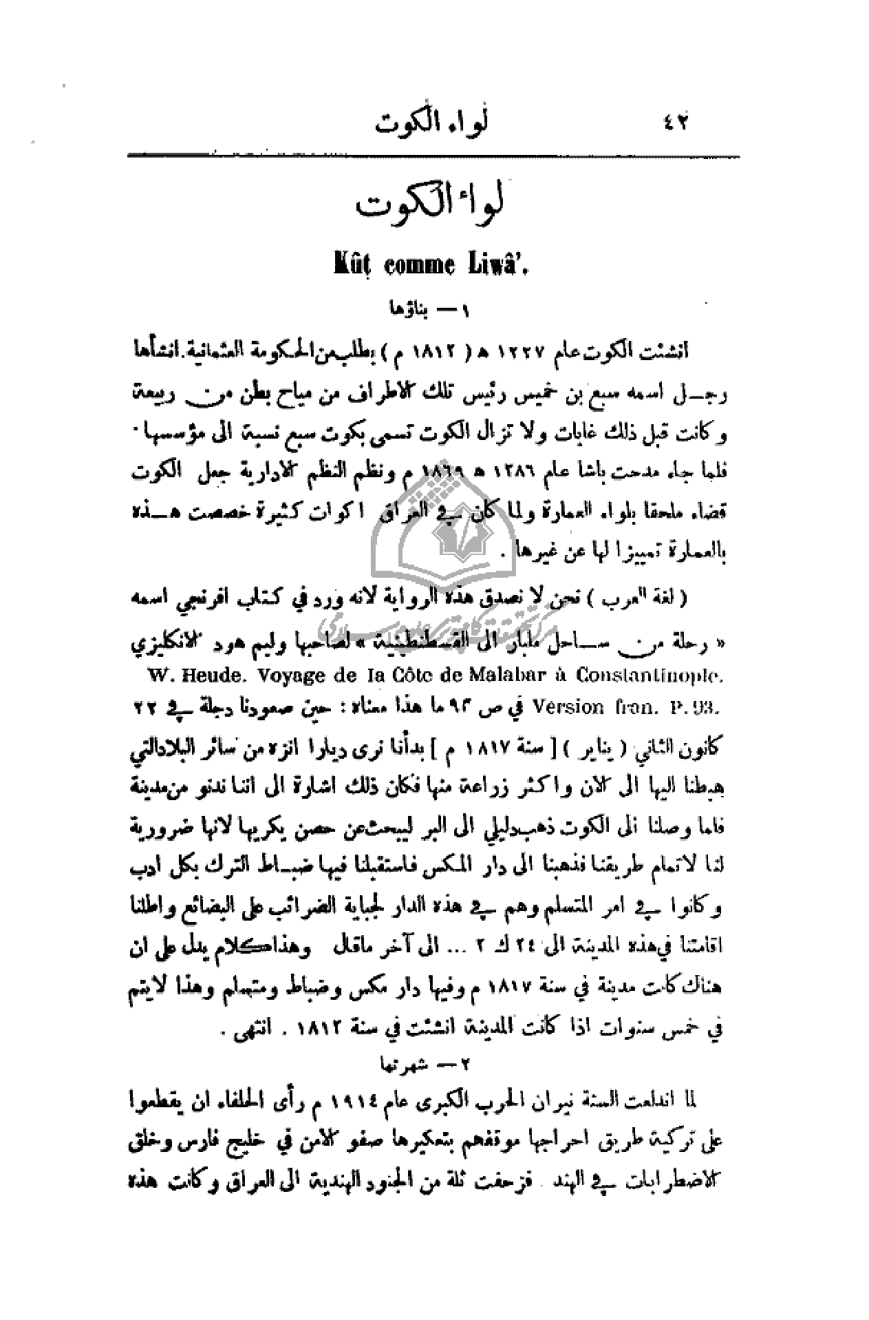 (لغة العرب) نحن لا نصدق هذه الرواية لأنه ورد في كتاب إفرنجي اسمه (رحلة من ساحل ملبار إلى القسطنطينية) لصاحبها وليم هود الإنكليزي 93. في ص93 ما هذا معناه: حين صعودنا دجلة في 22 كانون الثاني (يناير) (سنة 1817م) بدأنا نرى ديارا أنزه من سائر البلاد التي هبطنا إليها إلى الآن واكثر زراعة منها فكان ذلك إشارة إلى إننا ندنو من مدينة فلما وصلنا إلى الكوت ذهب دليلي إلى البر ليبحث عن حصن يكريها لأنها ضرورية لنا لإتمام طريقنا فذهبنا إلى دار المكس فاستقبلنا فيها ضباط الترك بكل أدب وكانوا في أمر المتسلم وهم في هذه الدار لجباية الضرائب على البضائع وأطلنا إقامتنا في هذه المدينة إلى 24 ك2. . . إلى آخر ما قال وهذا كلام يدل على أن هناك كانت مدينة في سنة 1817 وفيها دار مكس وضباط ومتسلم وهذا لا يتم في خمس سنوات إذا كانت المدينة أنشئت في سنة 1812. انتهى.