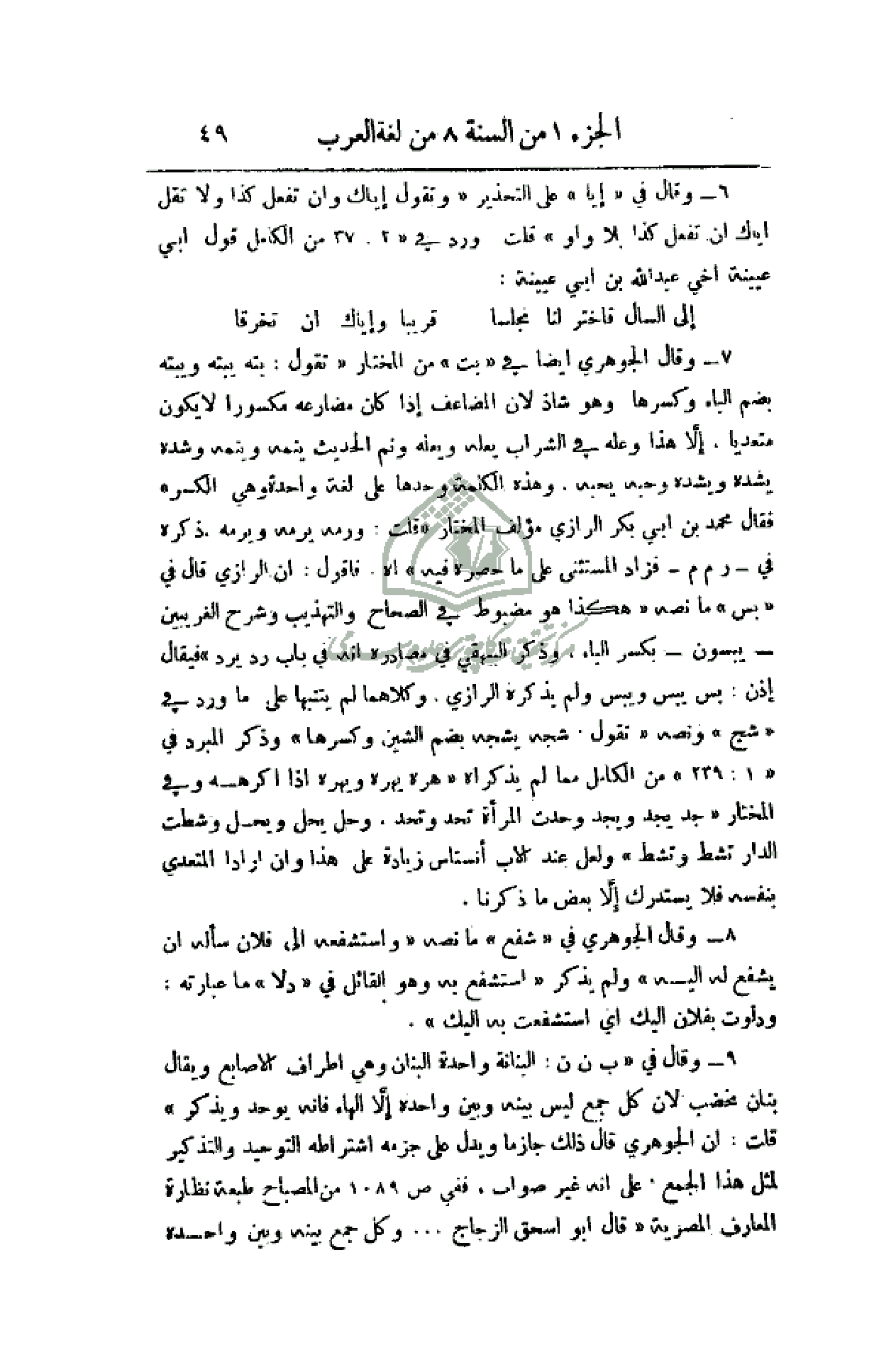 8 - وقال الجوهري في (شفع) ما نصه (واستشفعه إلى فلان سأله أن يشفع إليه) ولم يذكر (استشفع به وهو القائل في (دلا) ما عبارته: ودلوت بفلان إليك أي استشفعت به إليك).