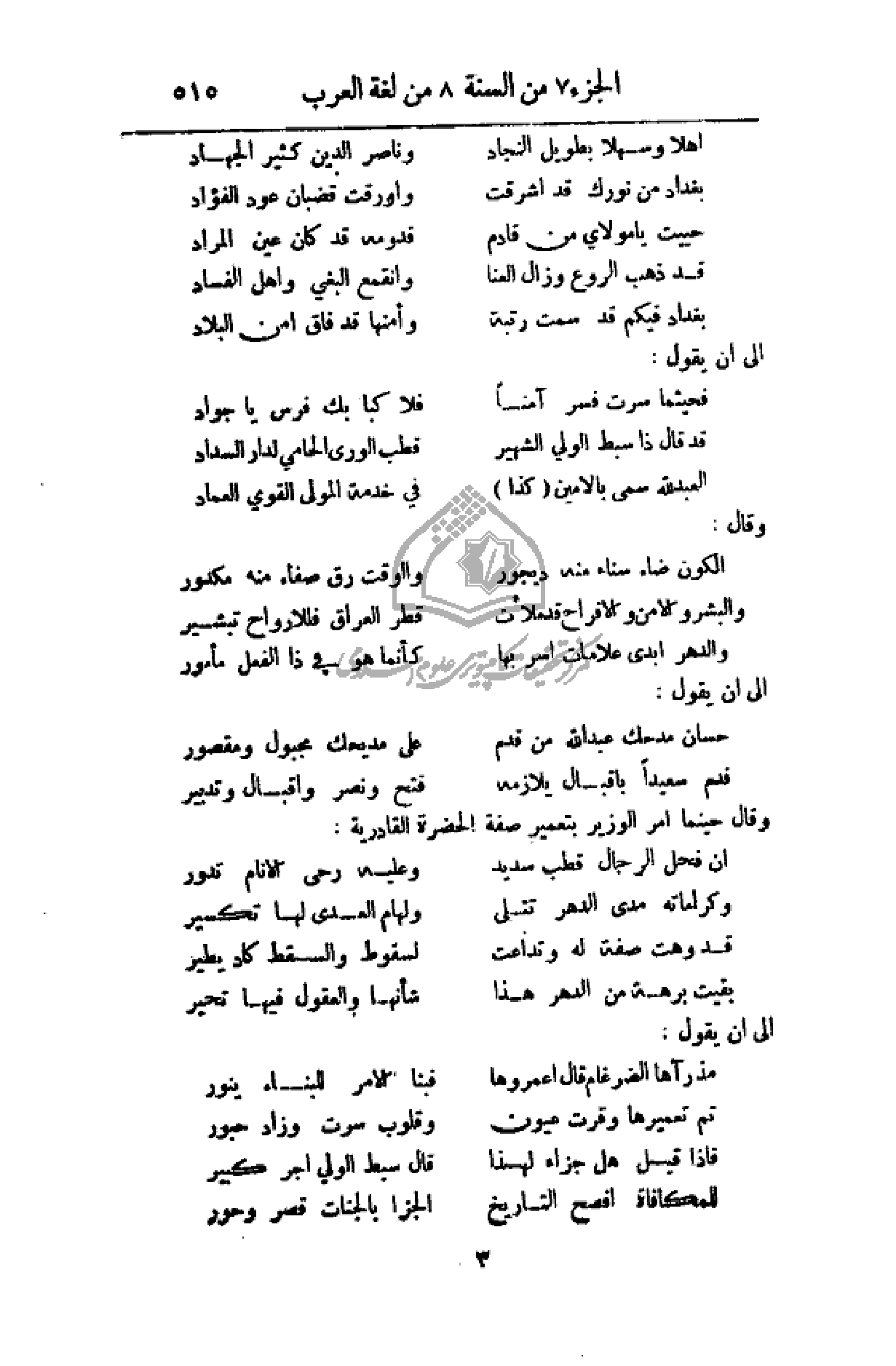 بغداد من نورك قد أشرقت ... وأورقت قضبان عود الفؤاد
