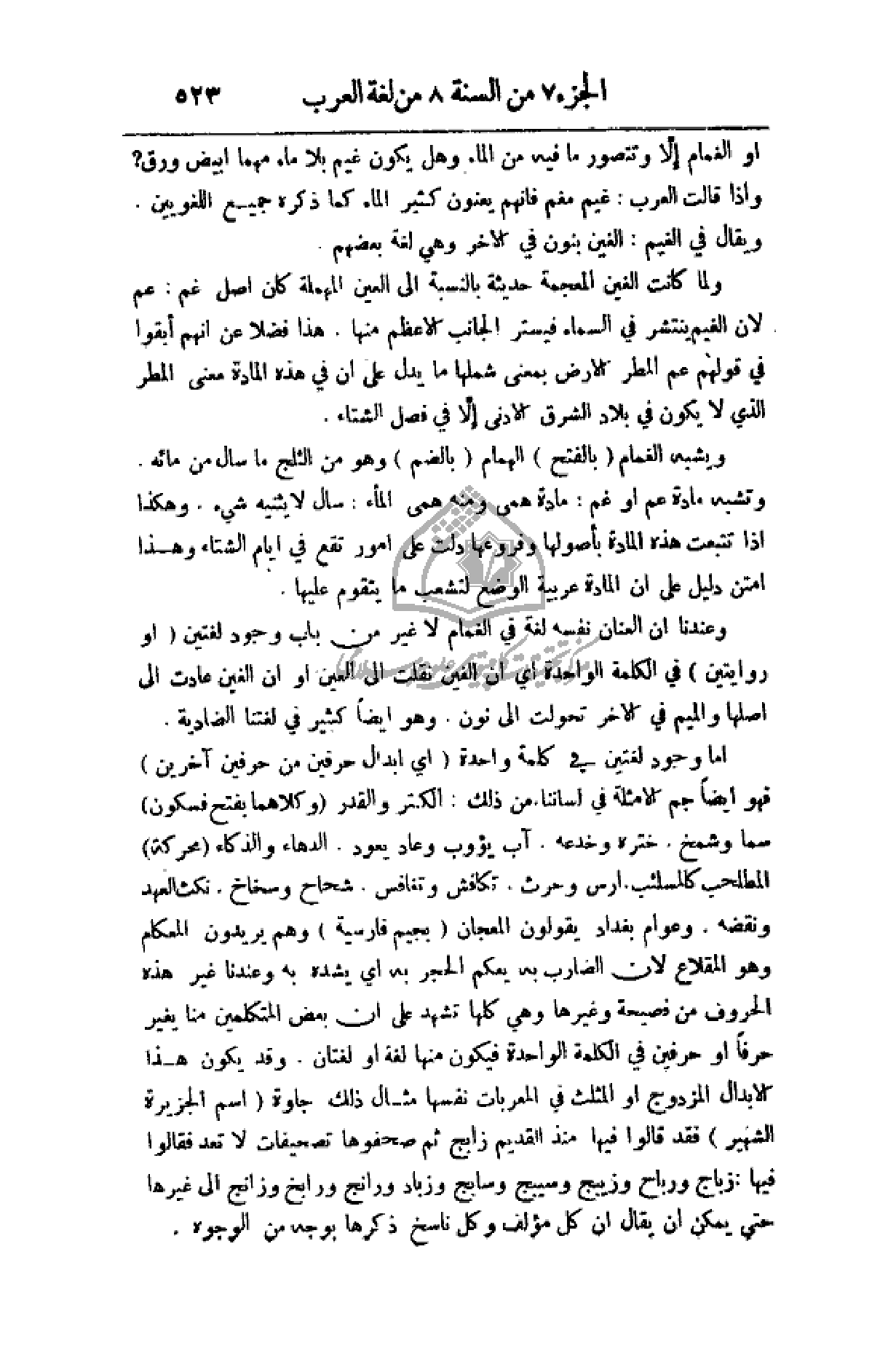 ويشبه الغمام (بالفتح) الهمام (بالضم) وهو من الثلج ما سال من مائة وتشبه مادة عم أو غم: مادة همي ومنه همي الماء: سال لا يثنيه شيء. وهكذا إذا تنبعث المادة بأصولها وفروعها